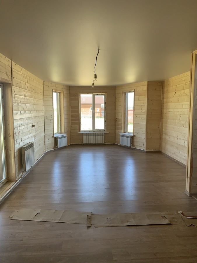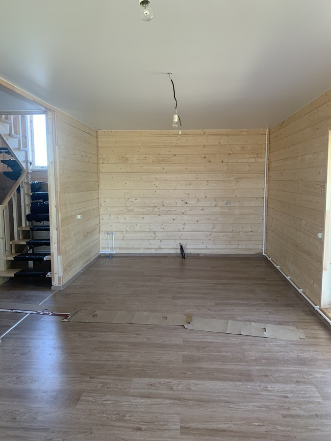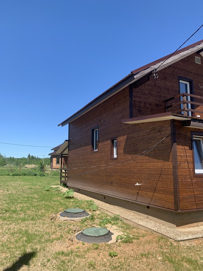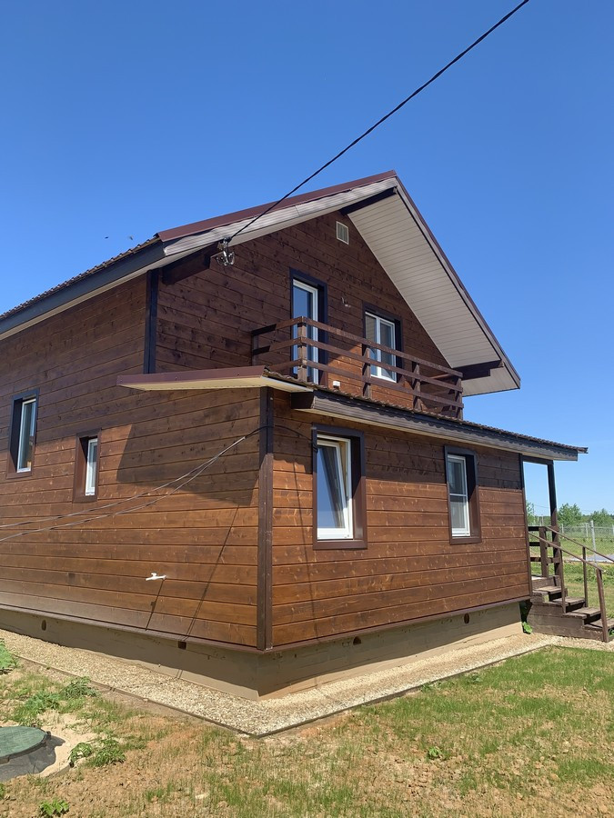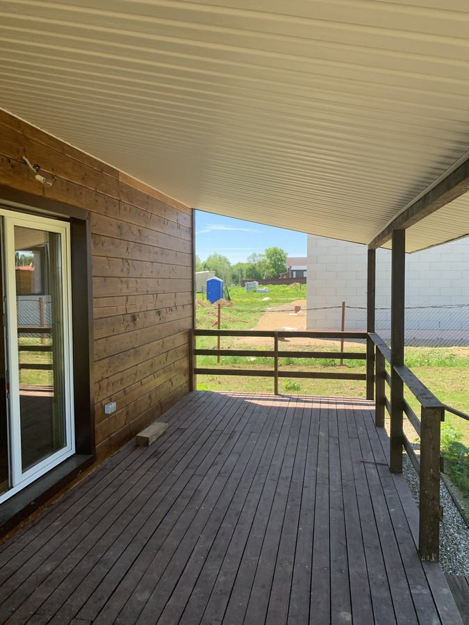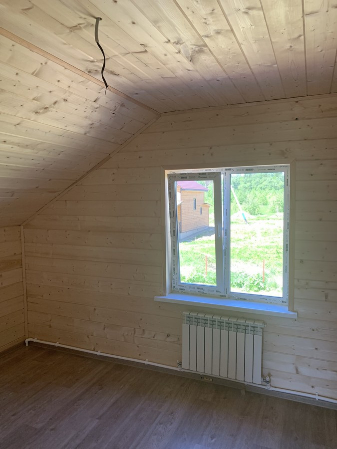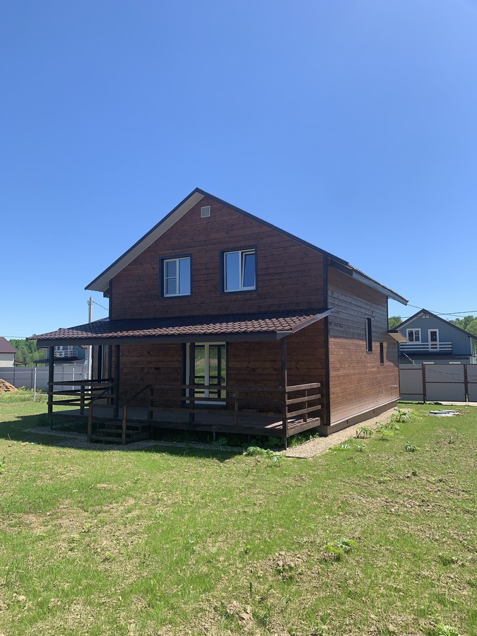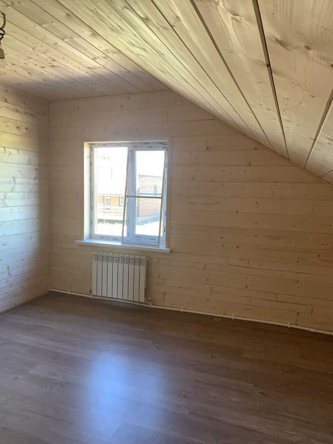 На 1 этаже - холл, большая кухня - гостиная, сан.узел, котельная, жилая комната. На втором этаже - три спальни , холл. Вся новая электрика и сантехника. Окна - ПВХ. В доме свет, вода (скважина), отопление, септик . Участок 9 кв.м. прилегает к лесу. Огорожен проф. листом по периметру. Отличный круглогодичный подъезд. Приличные соседи. Документы готовы. Соседи в поселке (полностью построен) проживают круглогодично, на протяжении многих лет. В охраняемом поселке: детская площадка.