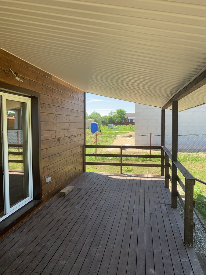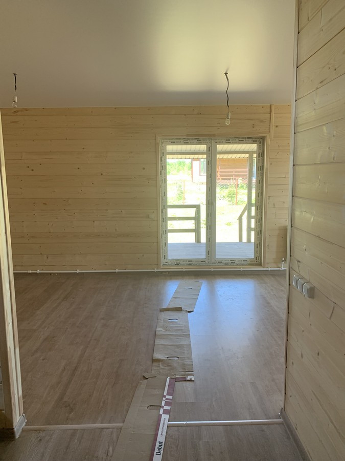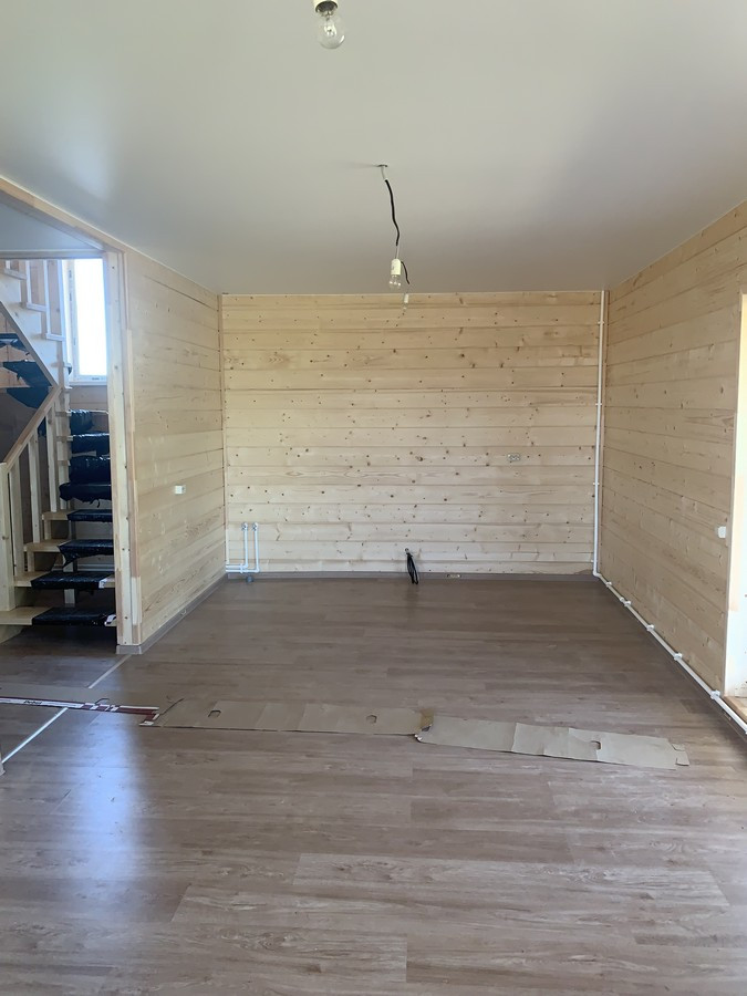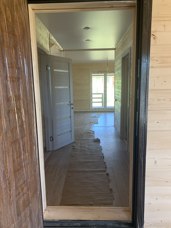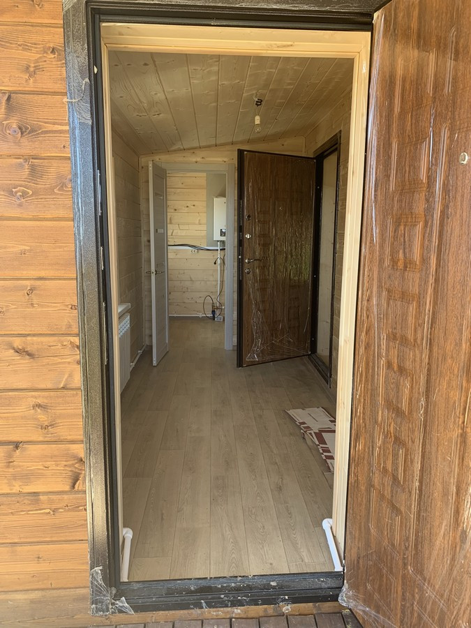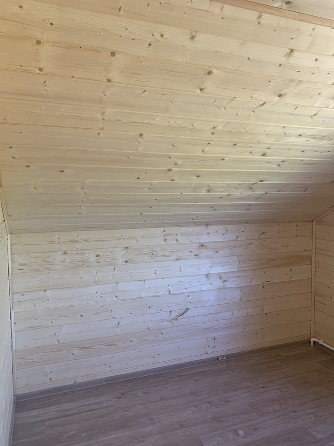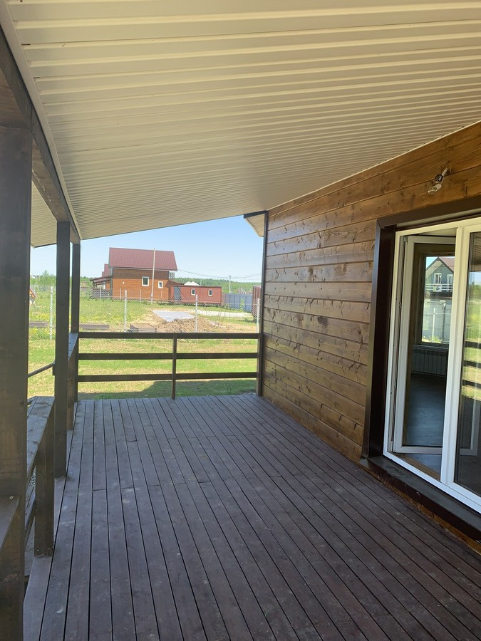 На 1 этаже - холл, большая кухня - гостиная, сан.узел, котельная, жилая комната. На втором этаже - три спальни , холл. Вся новая электрика и сантехника. Окна - ПВХ. В доме свет, вода (скважина), отопление, септик . Участок 9 кв.м. прилегает к лесу. Огорожен проф. листом по периметру. Отличный круглогодичный подъезд. Приличные соседи. Документы готовы. Соседи в поселке (полностью построен) проживают круглогодично, на протяжении многих лет. В охраняемом поселке: детская площадка.