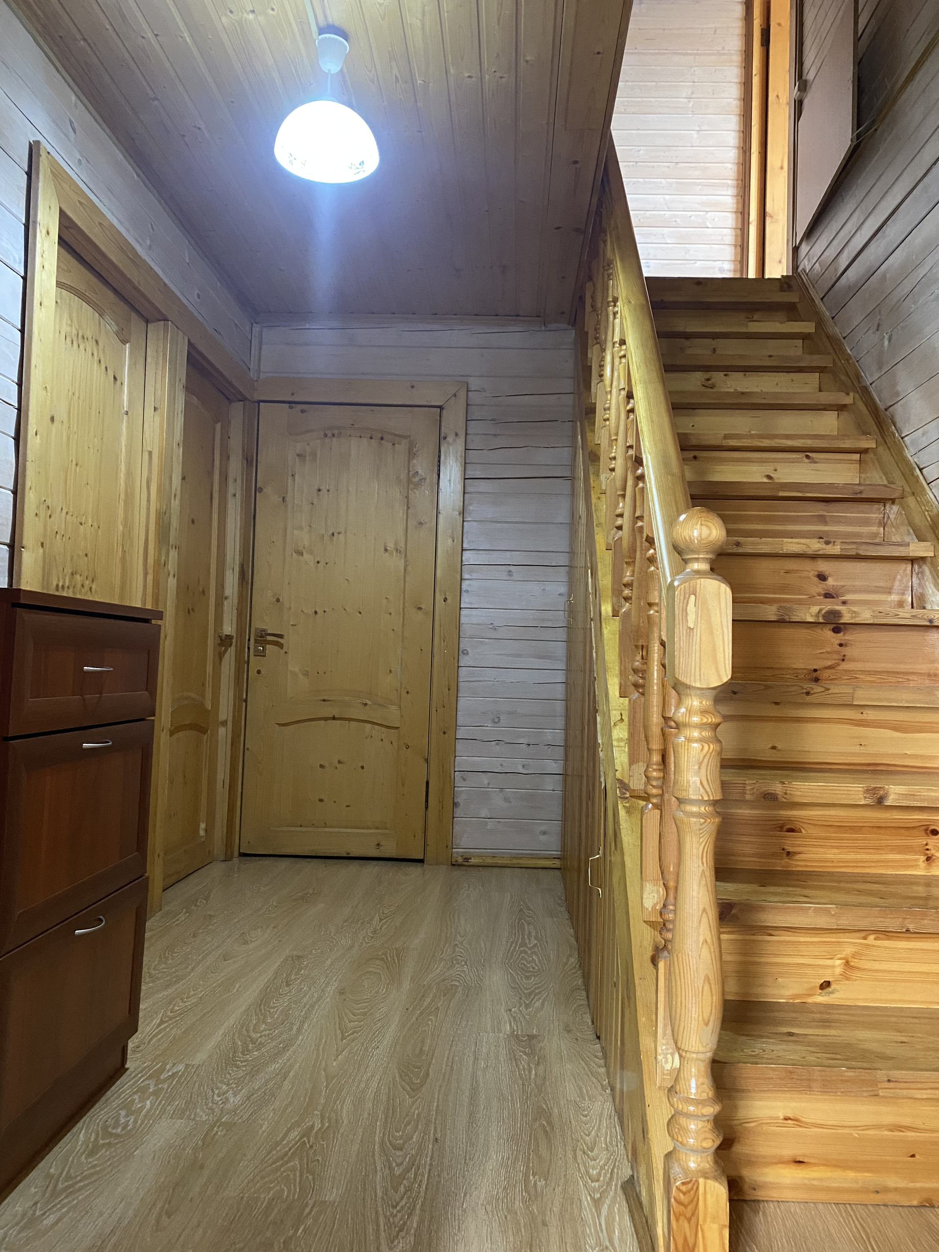 Дом двухэтажный с летней остекленной террасой, теплой большой верандой, 4 спальнями и кухней-гостиной. В ванной комнате удобная ванна-кабина.