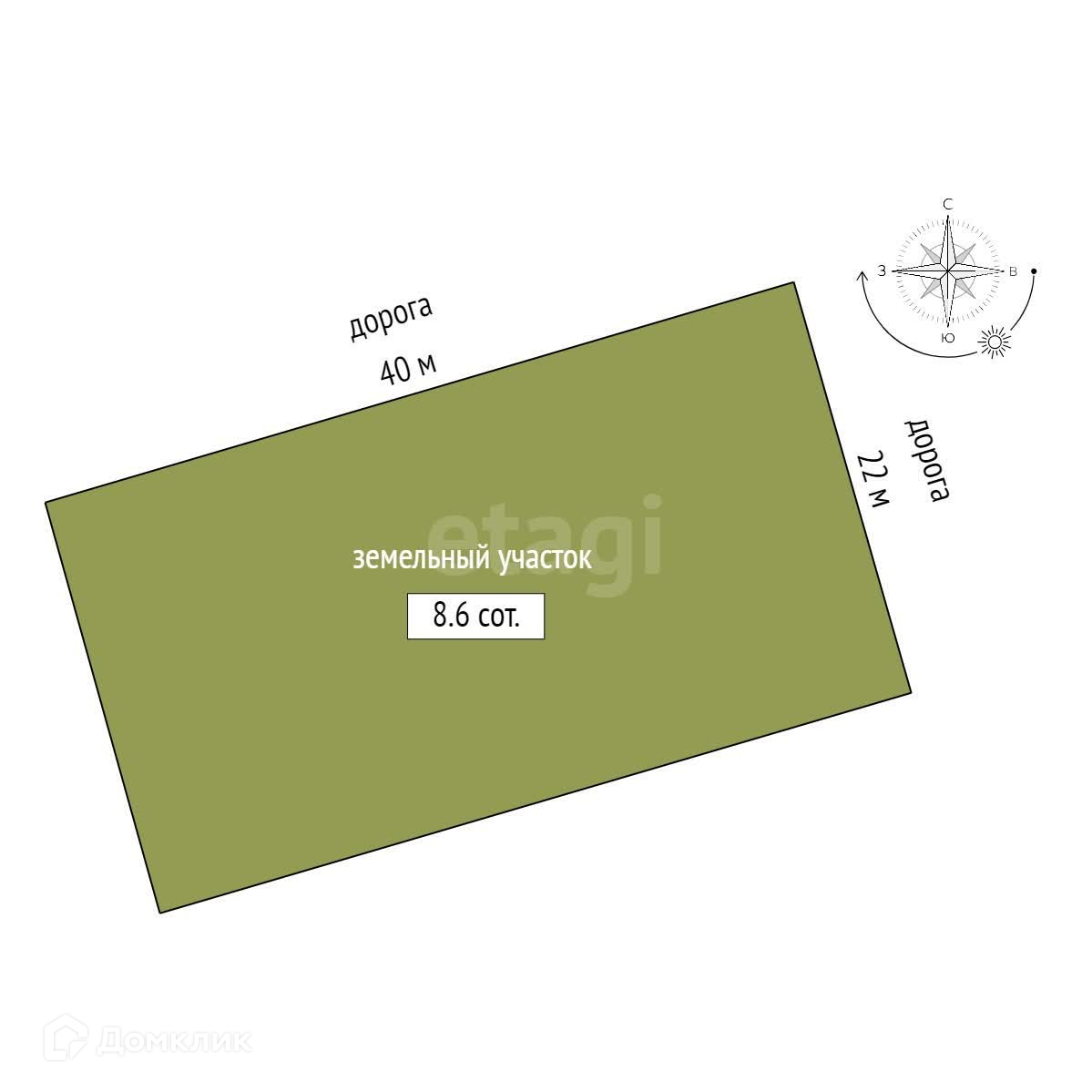 Площадь участка 8.6 сот.
