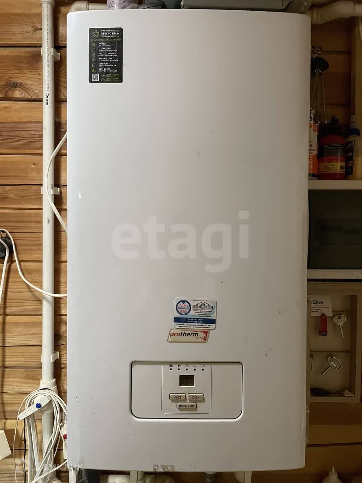 Отопление: электрический котел + твердотопливный котел.