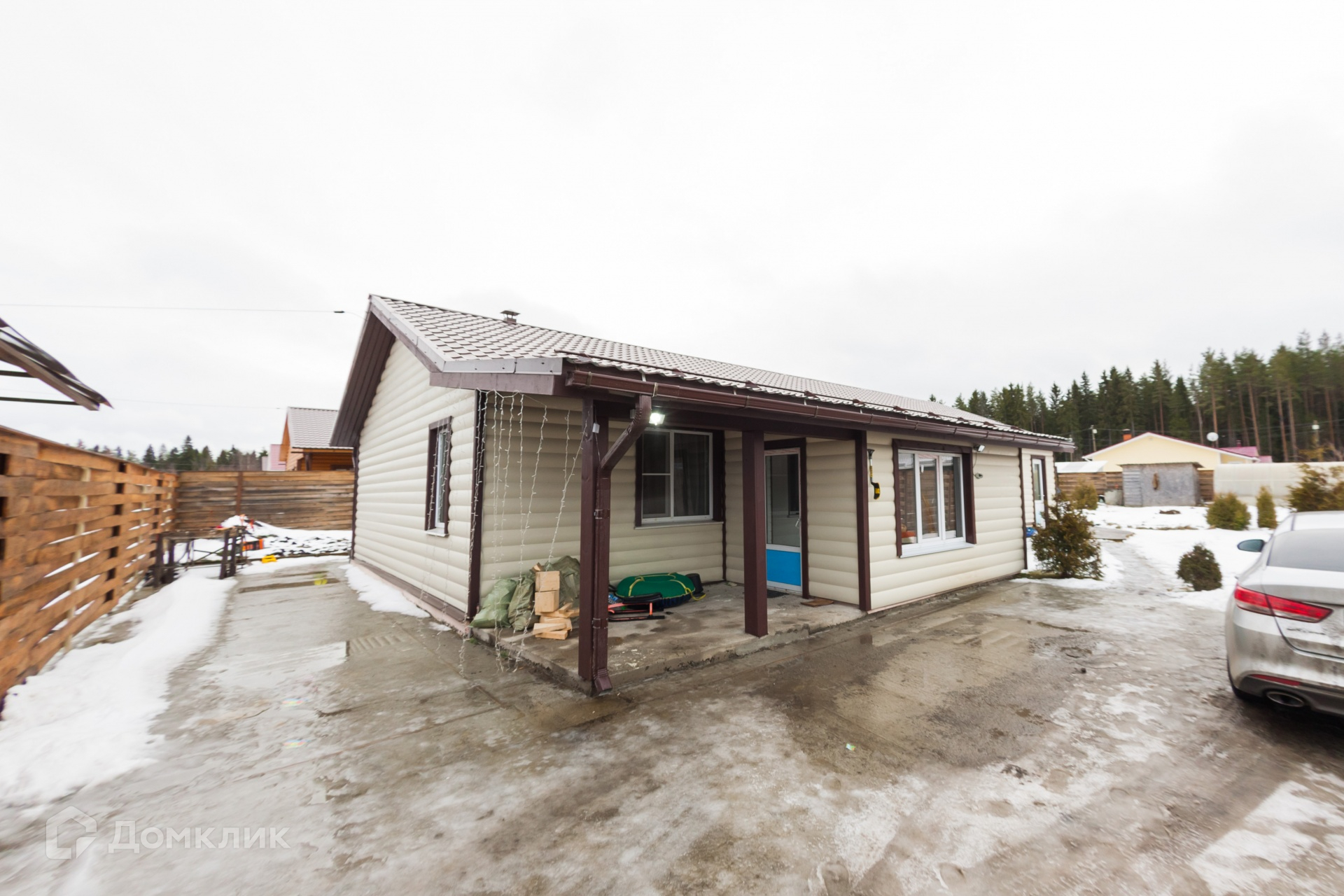 Дом построен из СИП-панелей на площади 10 соток.
