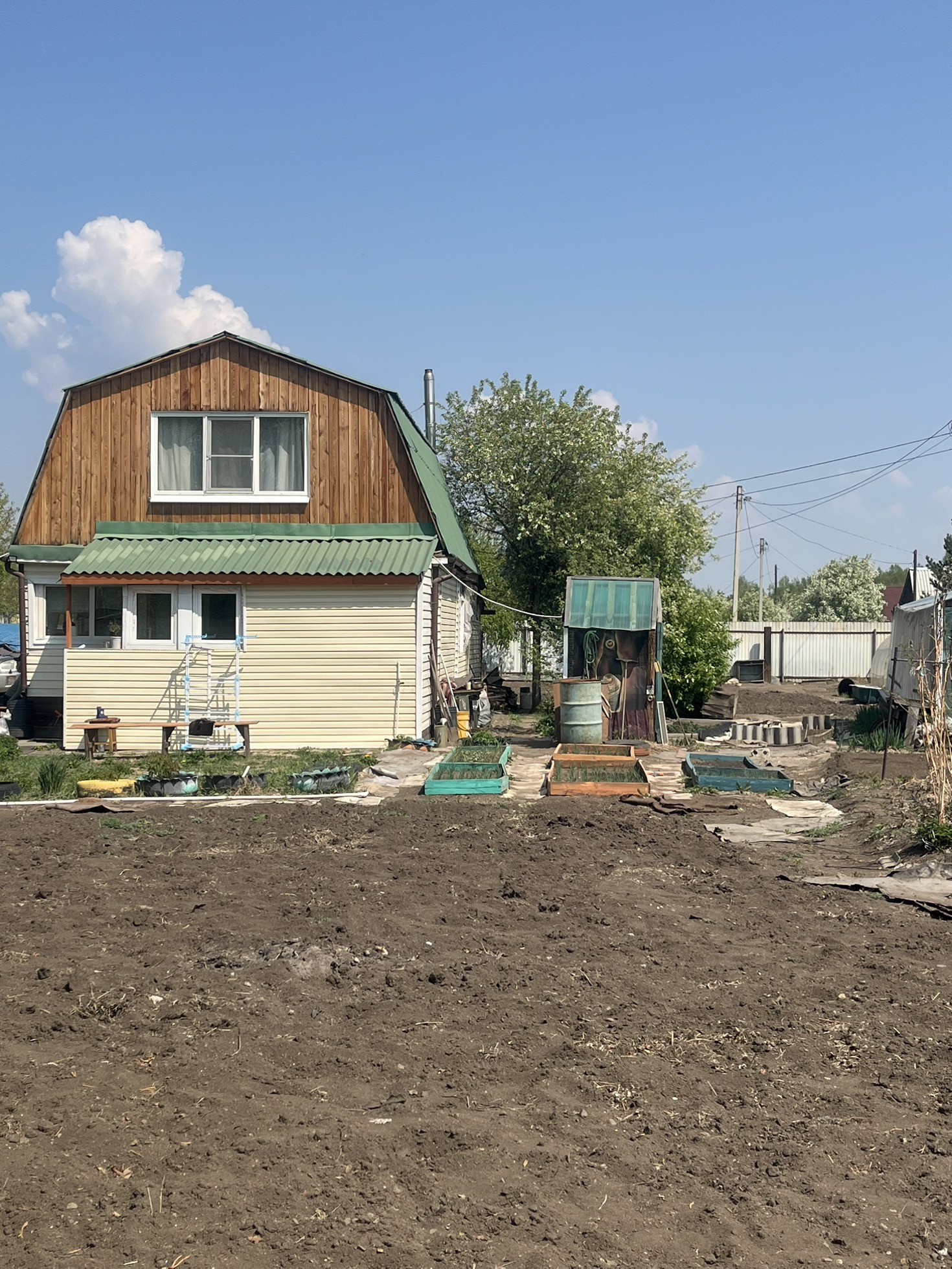 Продам дом, 2 жилых этажа, колодец, дом благоустроенный - вода заведена в дом, санузел в доме  (туалет). На первом этаже кухня и комната, на втором - одна большая комната, Участок 14 соток, на участке гараж, пристроенный к дому, баня, большая беседка, кунг, сарай, 2 теплицы, насаждения клубники, малины, смородины, жимолости, ранетки, крыжовника, сливы, облепихи, черемухи. Отопление - твердотопливный котел. Два взрослых собственника.
