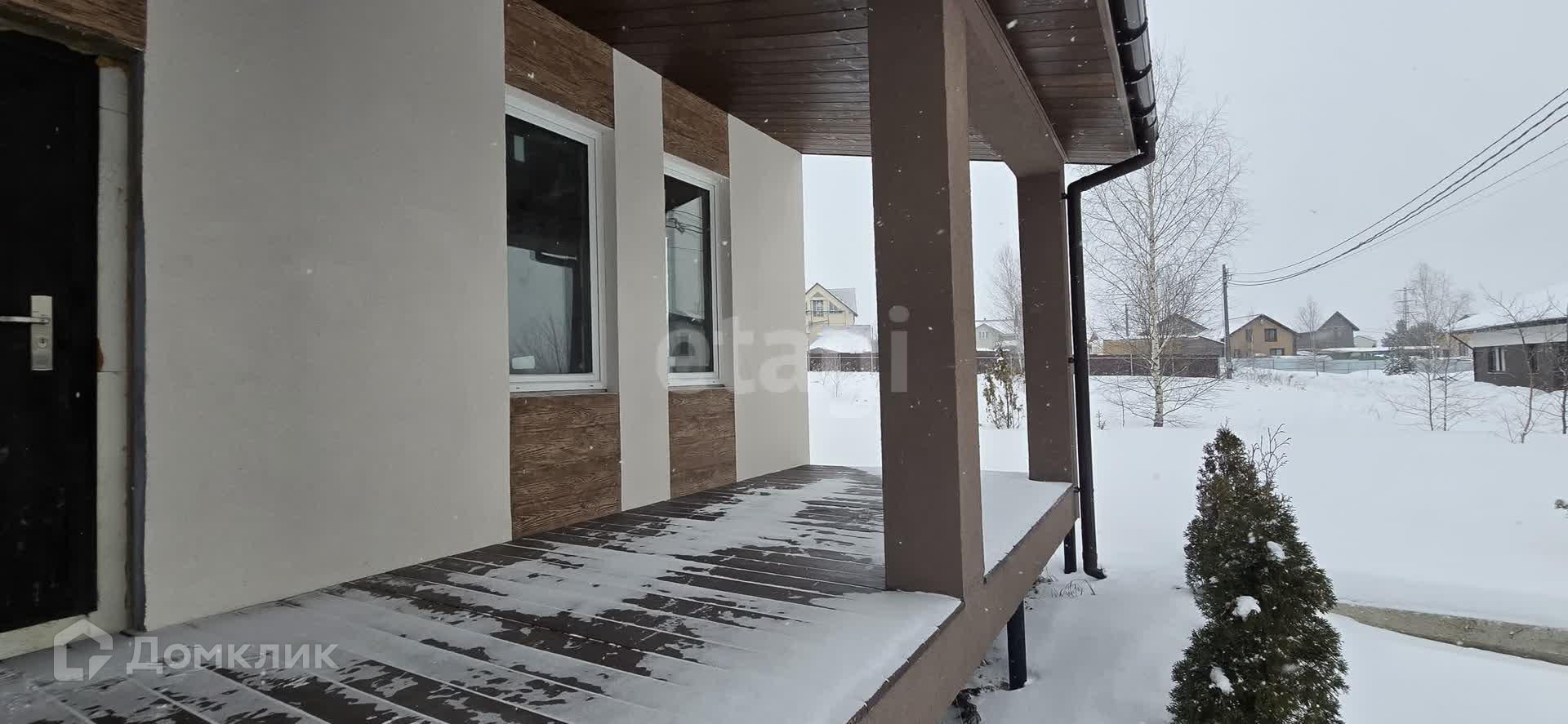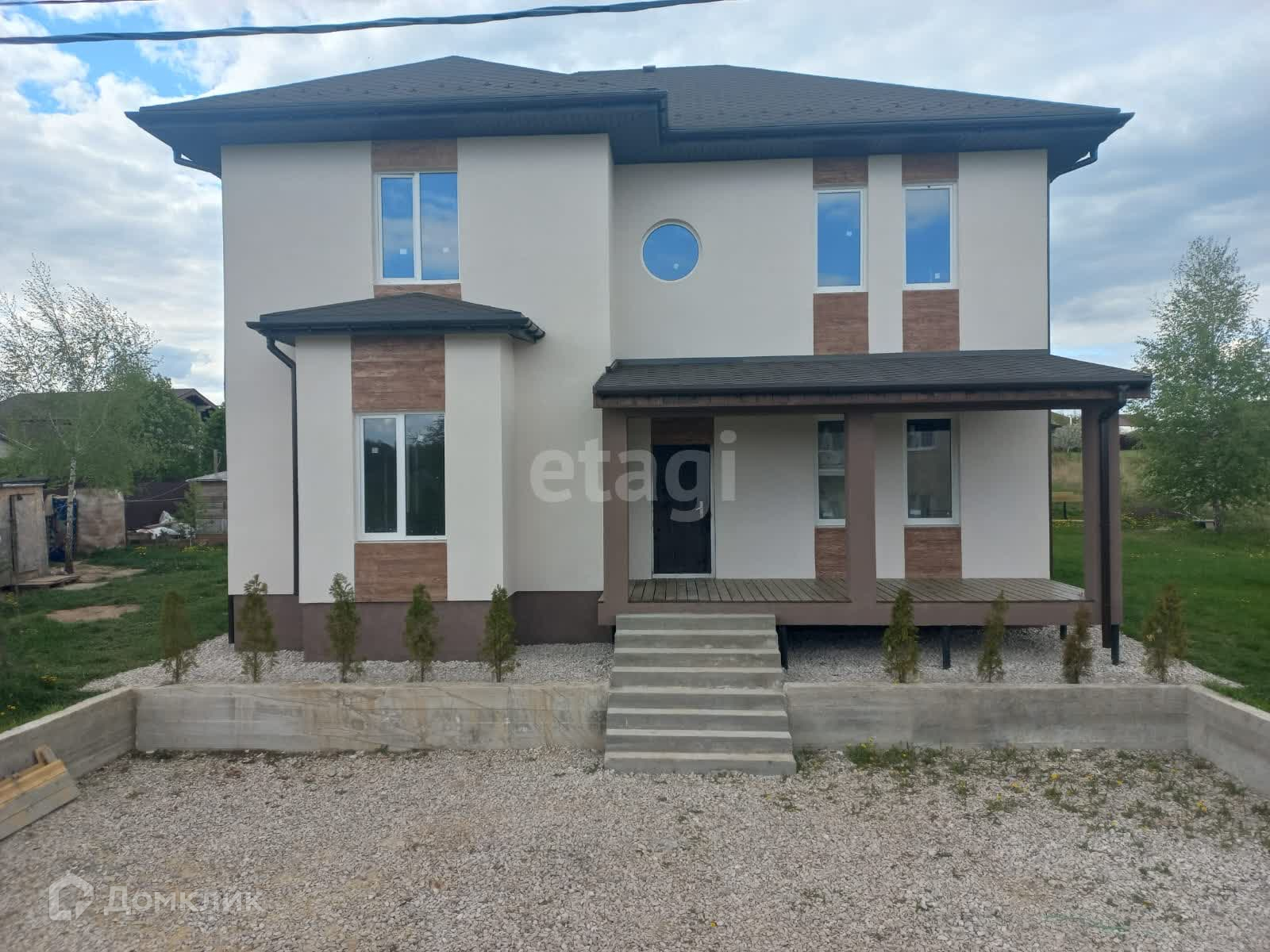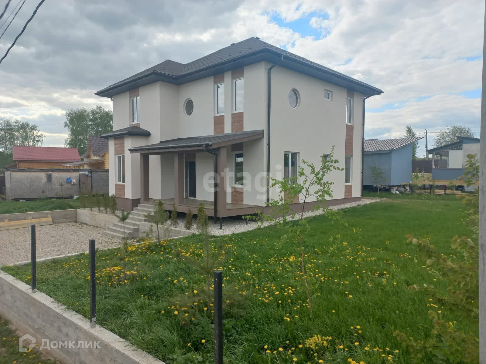Представляю Вашему вниманию новый дом 194 м². для круглогодичного проживания на земельном участке 8 сот. Дом расположен в благoустроеннoм оxраняeмoм кoттeджном посeлкe - TCH «Земляничное» в районе д. Kуpникoвo Чexoвскогo pайона. Участок ухоженный, ровный, сухой, правильной формы. Сделан газон, высажены деревья, обустроен заезд с дороги и парковочное место на 2-3 автомобиля. Дорога до дома асфальтированная.