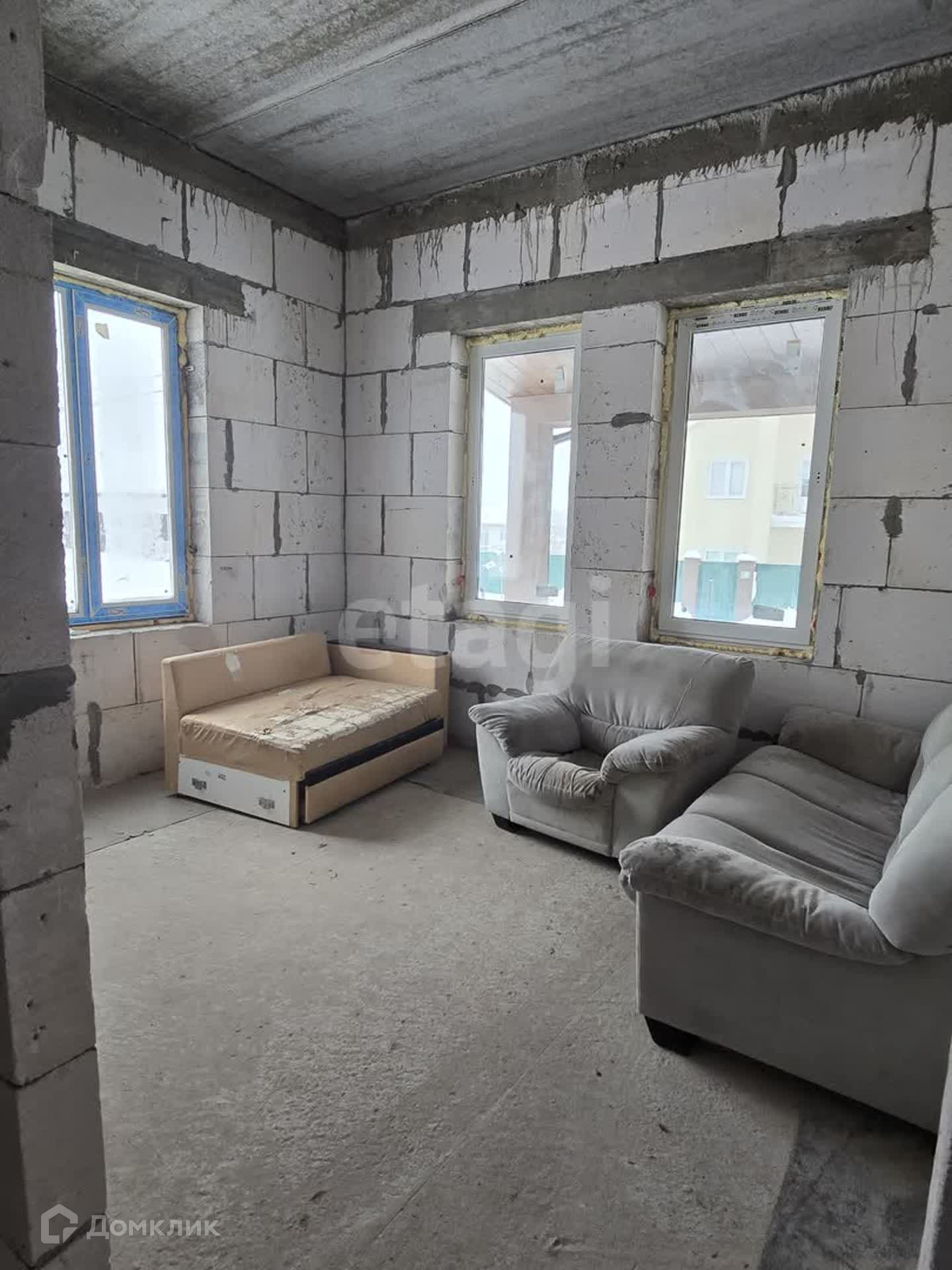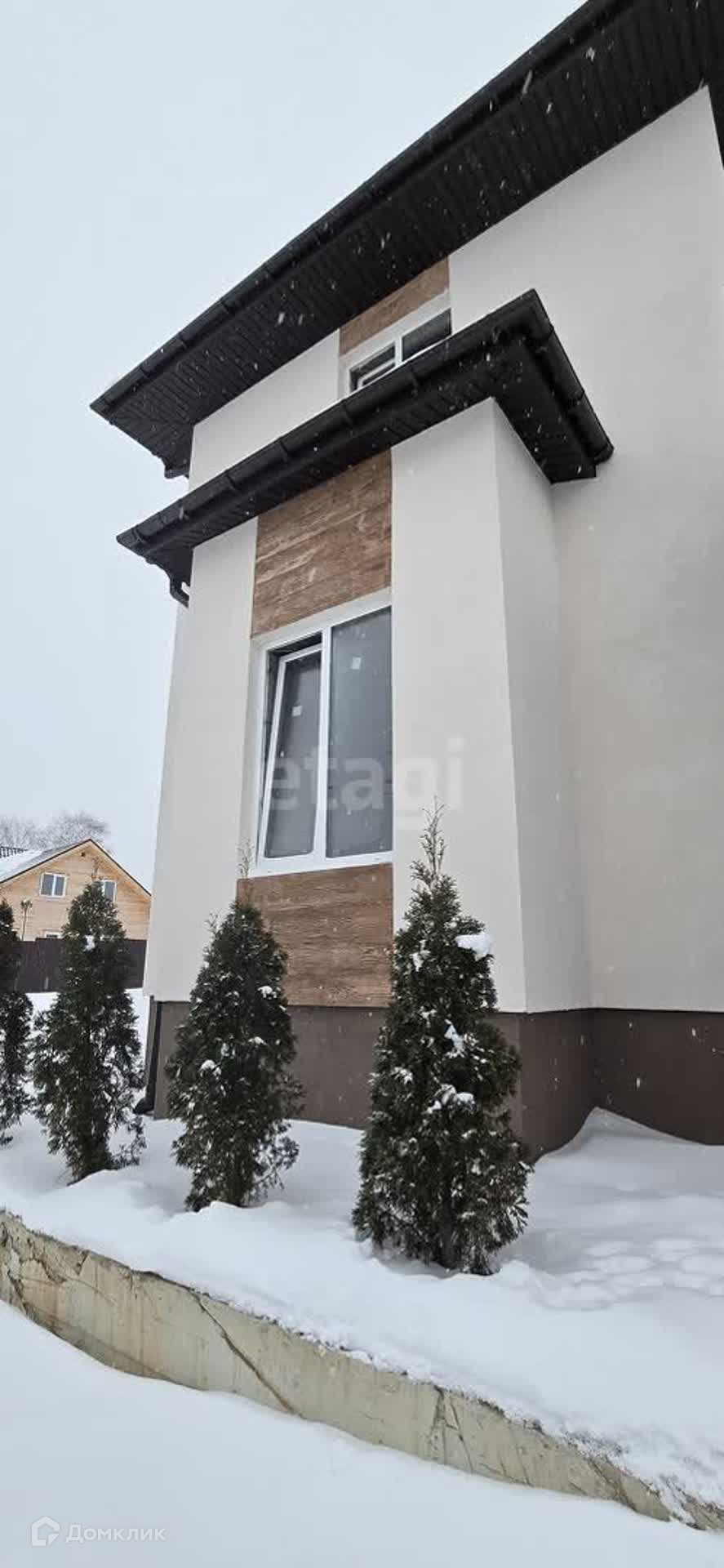 Maтериал стен – пеноблoк. Фacaд утeплeн, декopaтивнaя штукатуpка.