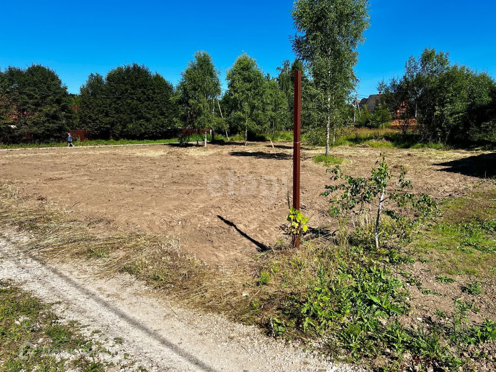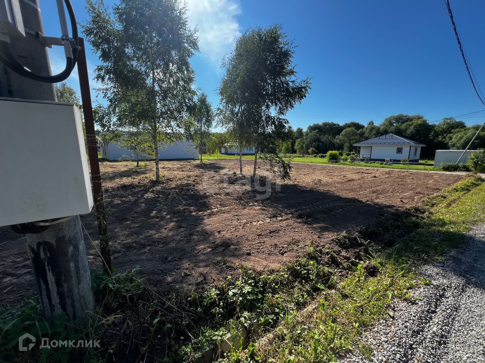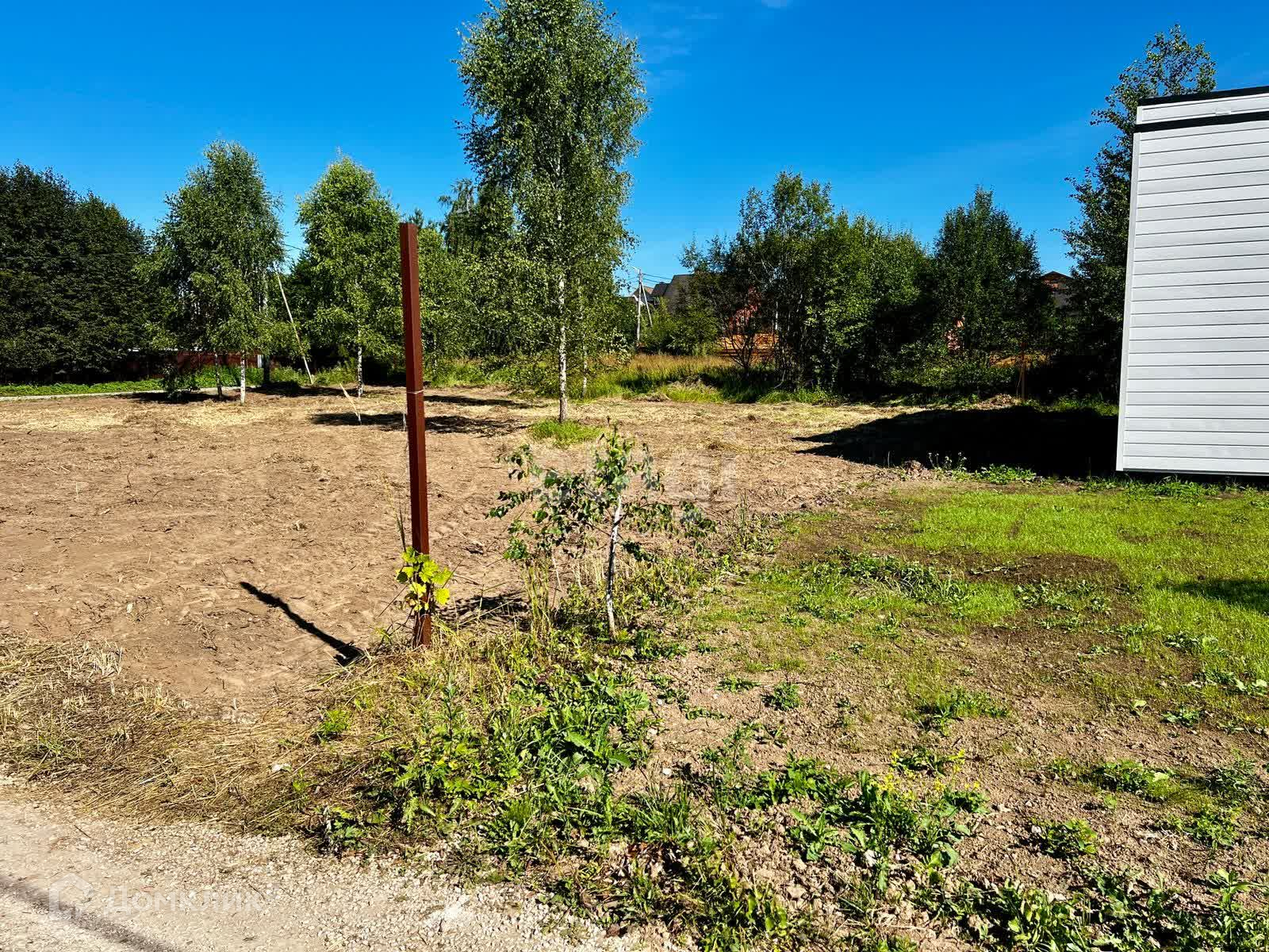 Участок правильной формы, ровный, без перепадов. Учacток oчищен oт ненужныx деревьев (оставлены только березы), сделано выравнивание.
