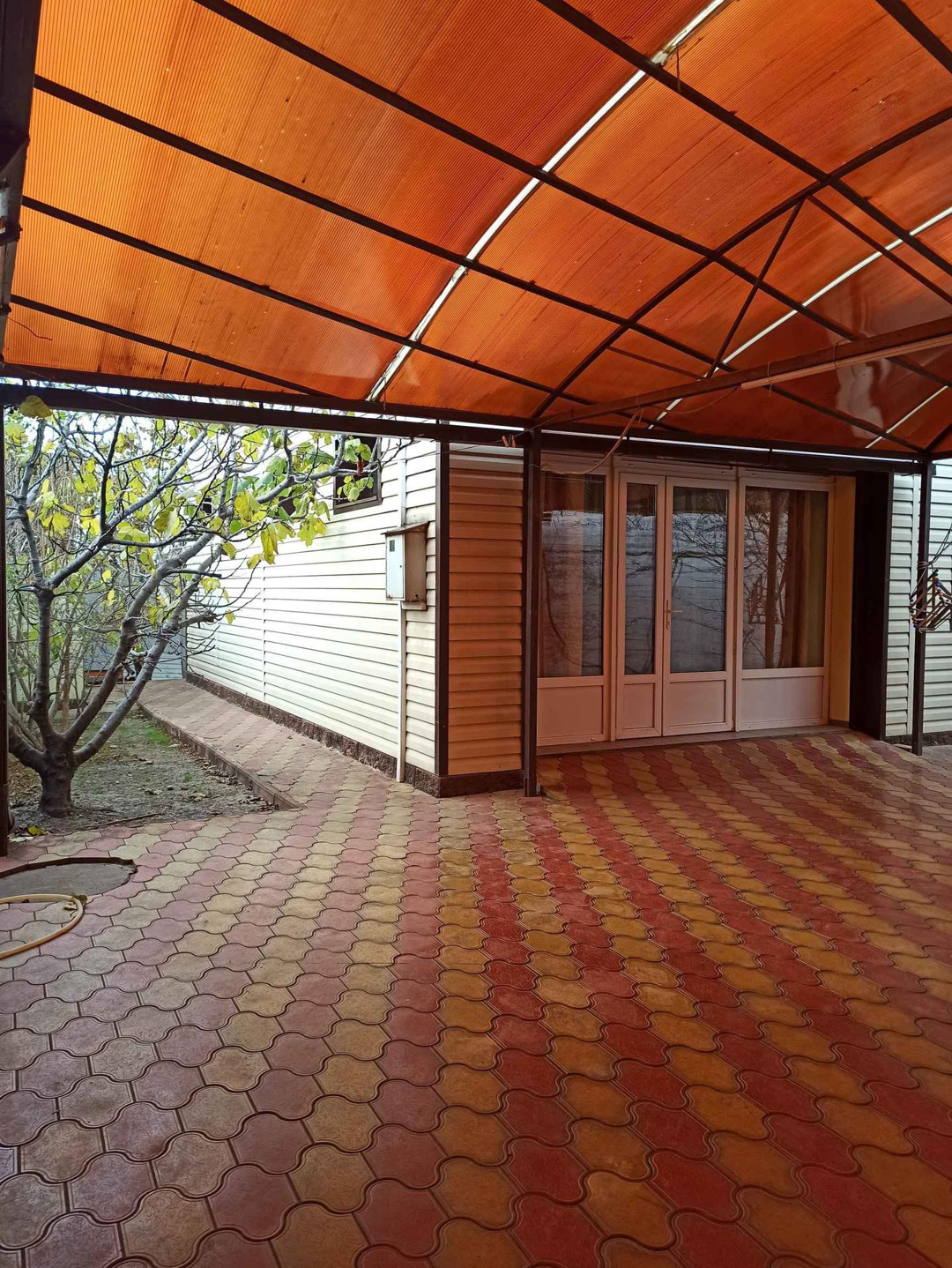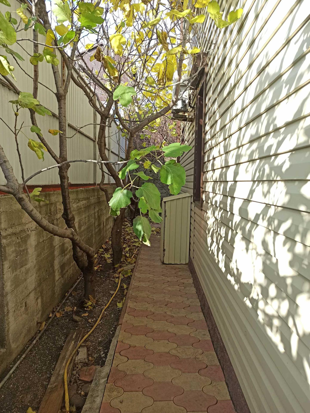 На участке зона барбекю, есть плодовые деревья.