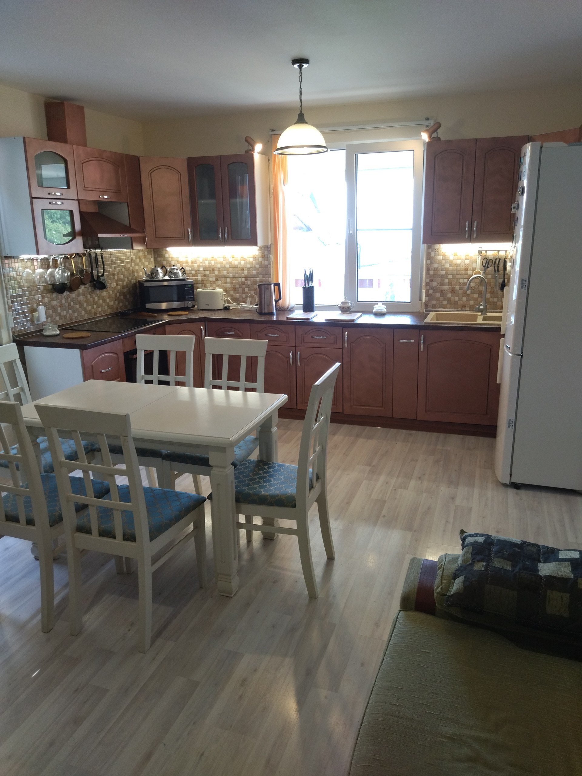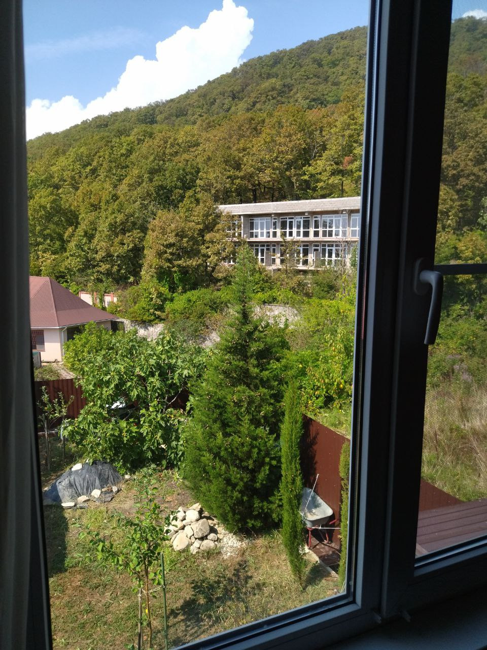 В связи с переездом, продается очень уютный двухэтажный дом мансардного типа общей площадью 98,9 кв. метров. Дом расположен в очень живописном, экологически чистом и популярном курортном месте Черноморского побережья селе Агой, что в 10 минутах езды от г. Туапсе. Дому 6 лет, он в отличном состоянии, не требует никакого ремонта. При продаже остается почти вся хорошая мебель, а так же большой холодильник, стиральная машина, электрогенератор мощностью 5 квт. и многое другое - заходи и живи. Так же на участке в отдельном дворике находится гостевой дом со всеми удобствами площадью 20 кв. метров для комфортного проживания 4-5 человек. стается комплект бруса для строительства бани площадью 20 кв. метров. Документы в порядке, один собственник. Дом строила известная краснодарская строительная фирма, которая по окончанию строительства дала 5-летнюю гарантию на дом, что говорит о надежности и качестве произведенных работ. В доме все удобства, рациональная планировка, большая кухня-столовая, 4 комнаты, два санузла. На обеих этажах установлены кондиционеры, есть система видеонаблюдения, проведен оптоволоконный Интернет. Прямо к дому ведет новая бетонная дорога, есть навес для автомобиля. Дом находится в спокойном, тихом и очень красивом месте на возвышенности, на абсолютно ровном участке площадью 4 сотки. С участка открывается прекрасный, завораживающий панорамный вид на море, до большого, обустроенного галечного пляжа которого всего 600 метров или 10 минут ходьбы прогулочным шагом. С обратной стороны участка находятся живописные сопки с красивым дубовым лесом, тропинками для прогулок в нем, грибами, орешником и каштанами. Участок полностью обихожен. На нем высажен молодой сад из декоративных ( пальмы трохикарпус форчуна, пирамидальные кипарисы, листопадные магнолии, лавровишня, лагерстремия индийская, декоративный миндаль ), а также плодовые и уже частично плодоносящие деревья тщательно подобранных отличных сортов ( персики ранние, среднеспелые и инжирный, инжир, азербайджанский гранат, киви, тонкокорый миндаль, абрикосы, черешни, яблони, вишни, виноград киш-миш, лавр благородный или в простонародье лаврушка ).Также на участке высажено около 20 кустов роз, некоторые из них цветут даже в феврале, если нет минусовой температуры. Еще из декоративных растений посажены и радуют олеандры, камелия, самшит, гортензии, мискантусы, горные сосенки, можжевельники и многое другое.