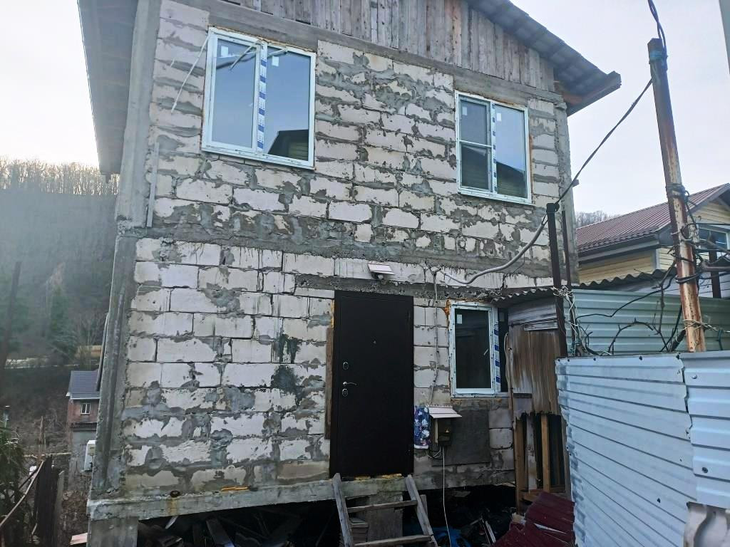 Продается отдельностоящий дом в г. Туапсе по ул. Тургенева, расположенный в удобном, тихом и живописном месте. Общая площадь дома 100 кв.м., материал постройки: газоблок.  Дом в два этажа с черновой отделкой, располагает достаточной площадью для воплощения любых идей планировки и стиля. Объект с широкими возможностями по окончательному доведению внутренней отделки помещений под свои нужды и предпочтения. Что гораздо тяжелей переделывать в уже полностью завершенных под ключ проектах, так как это всегда дороже, сложнее и дольше. Планировка дома: на первом этаже- прихожая, кухня-столовая, сан.узел, на втором этаже- три жилые комнаты. Отдельный вход в цокольный этаж (15 кв.м.) в котором можно жить пока Вы будете делать ремонт в доме, состоит из кухни и сан.узла. Центральные коммуникации: электроснабжение, водоснабжение и водоотведение. Труба природного газа идет по границе участка. Земельный участок в долевой собственности, общая площадь участка 1.5 сотки. Категория земель: Земли населённых пунктов. Разрешенное использование: индивидуальные жилые дома. Двор забетонирован, удобный подъезд, периметр участка огорожен. До моря 2.3 км. Мы будем рады организовать персональный показ или онлайн-показ в любое удобное для вас время!