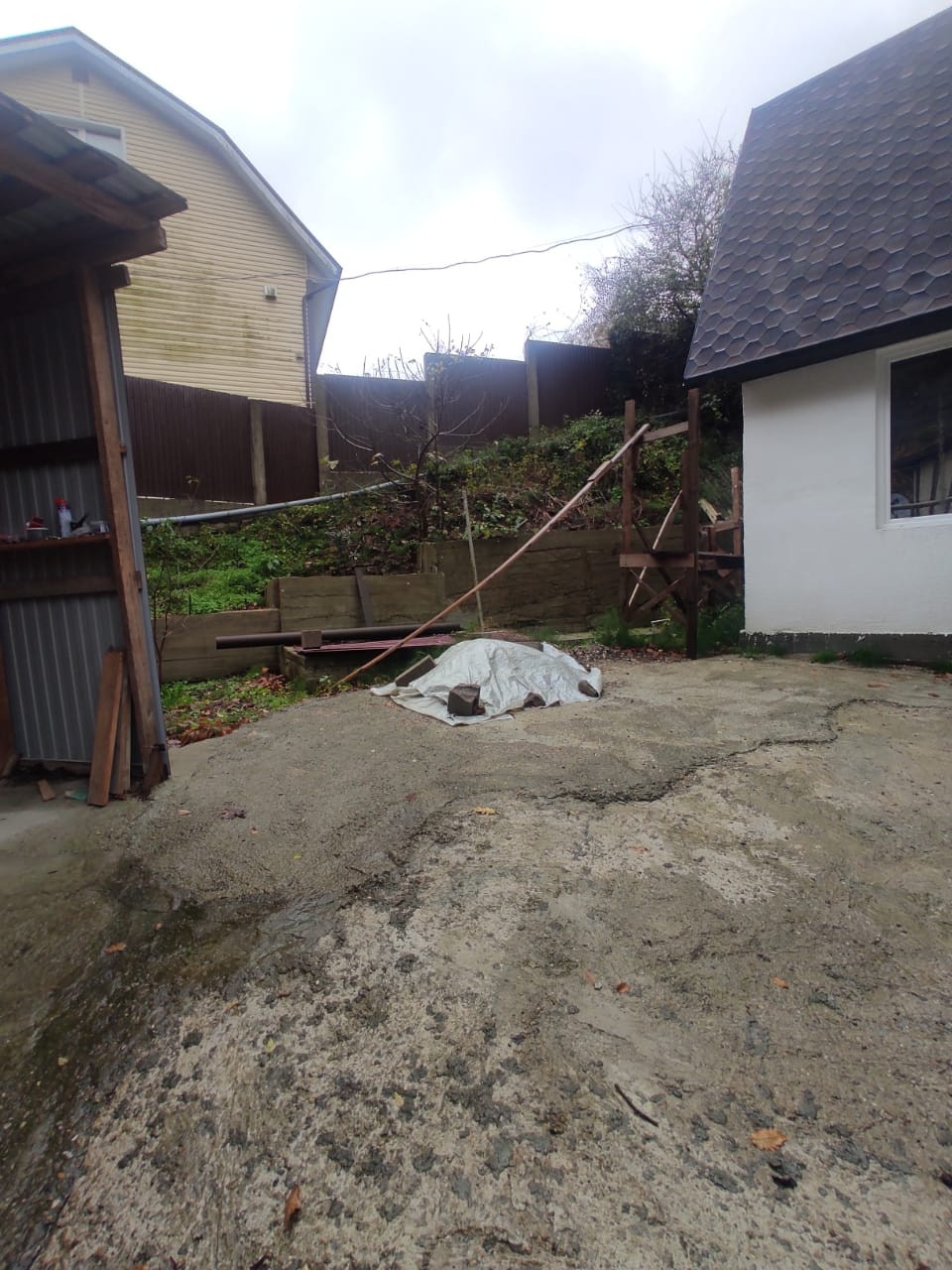 Подъезд, заезд, место под гараж - стены подняты, крыша накрыта. Участок 3,1 сотки в собственности.