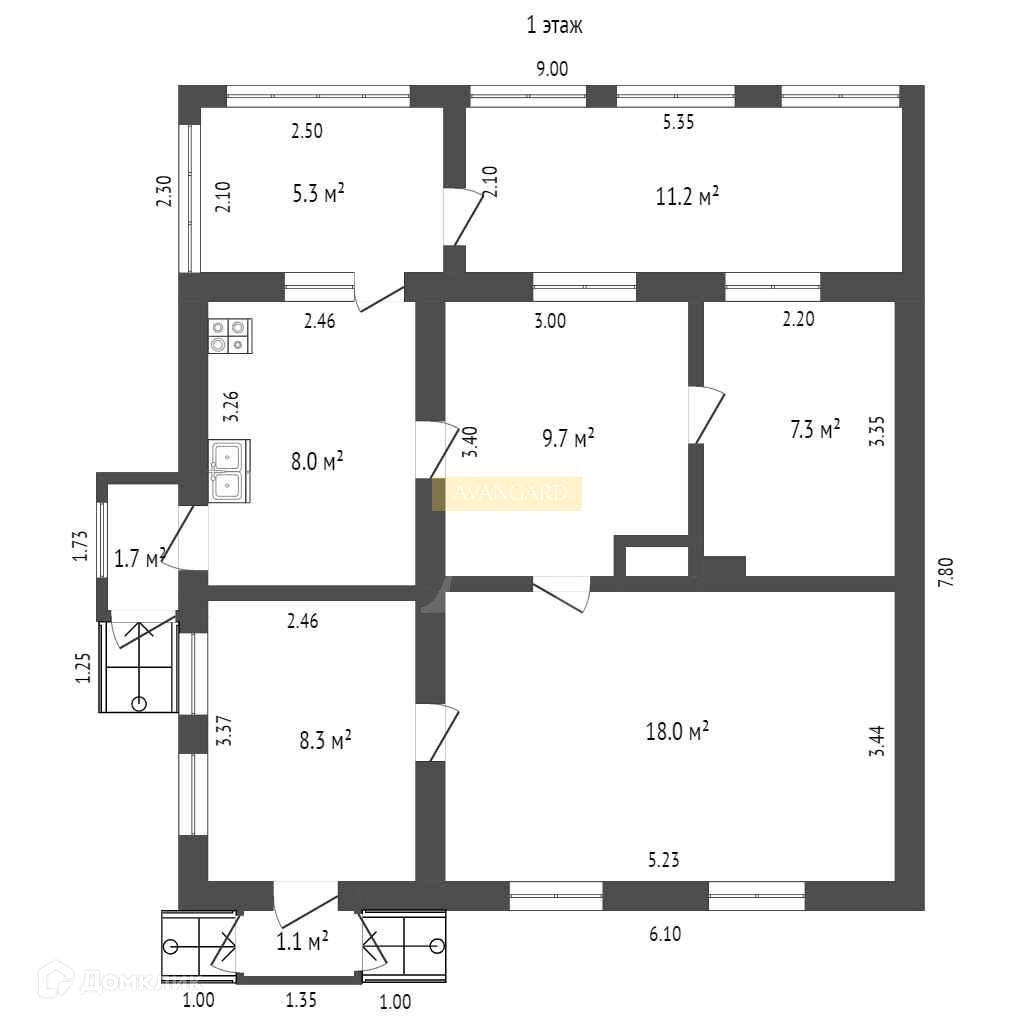 Общая площадь 91 м2