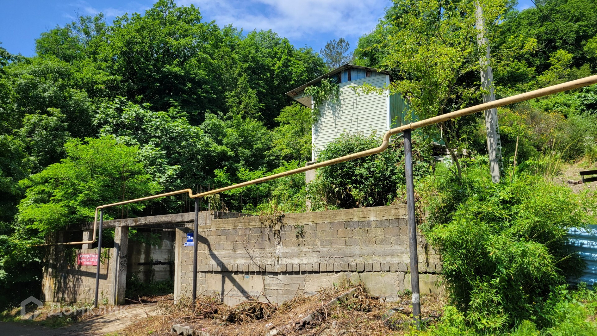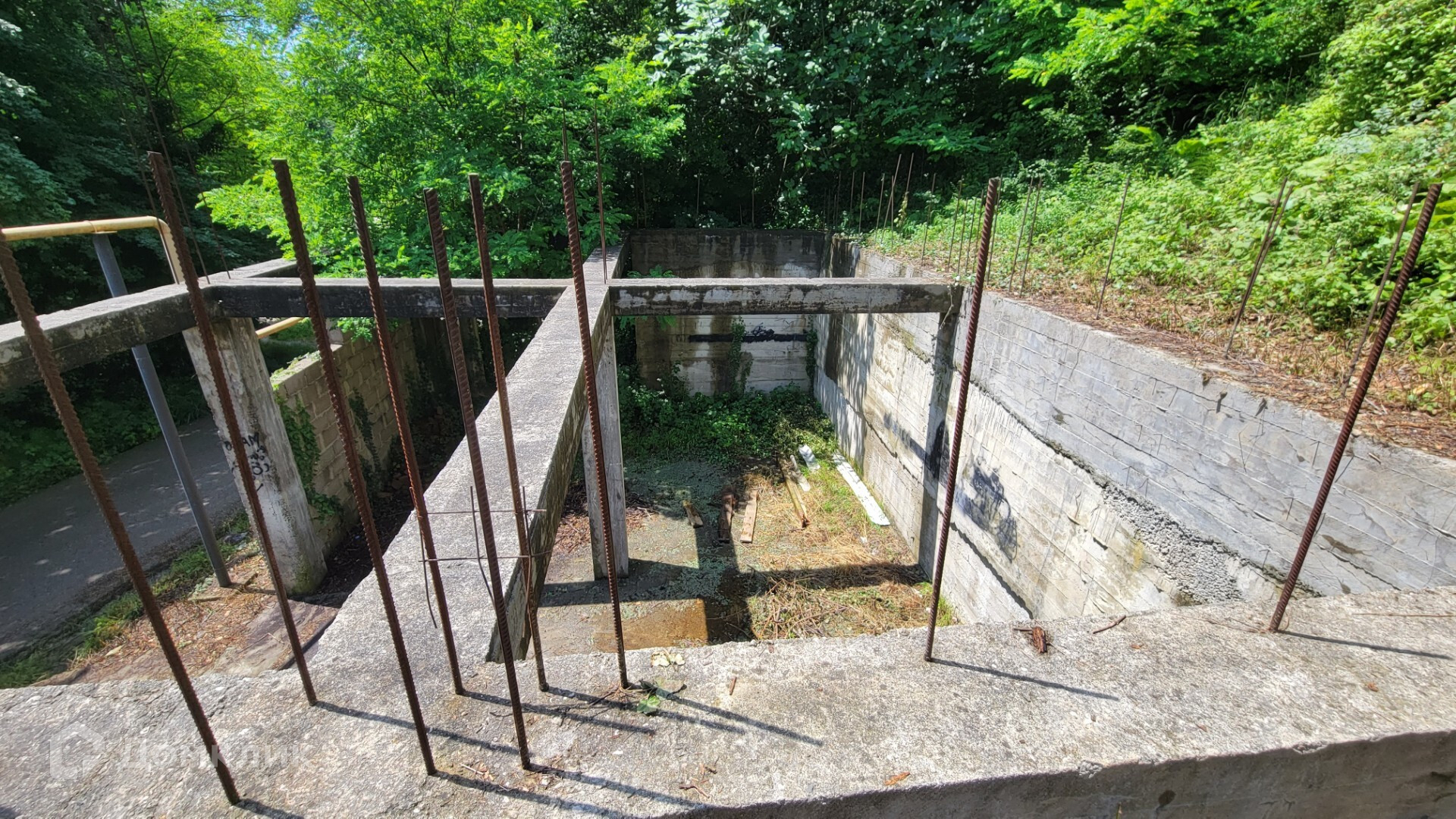 - Также на участке возведен капитальный фундамент 10 на 11 м. Стены высотой 3,5м. Делался под 3-х этажный гостевой дом.