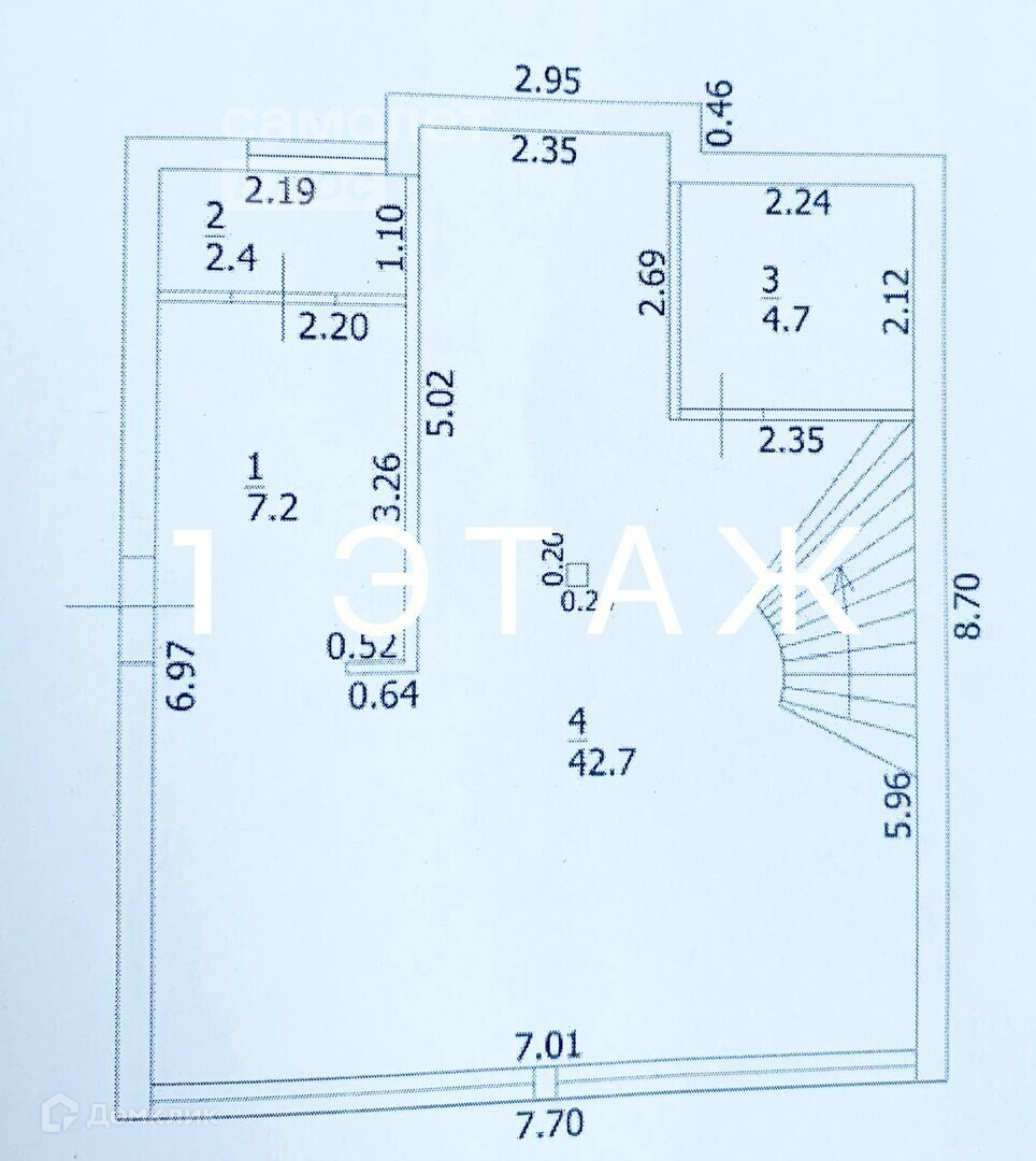 На первом этаже коридор 7.2 кв. м. , котельная 2.4 кв.м., совмещенный с/у 4.7 кв.м. и большая кухня-гостиная 42.7 кв. м. с панорамными окнами, вид на горы, восточная сторона. Первый этаж теплый пол.