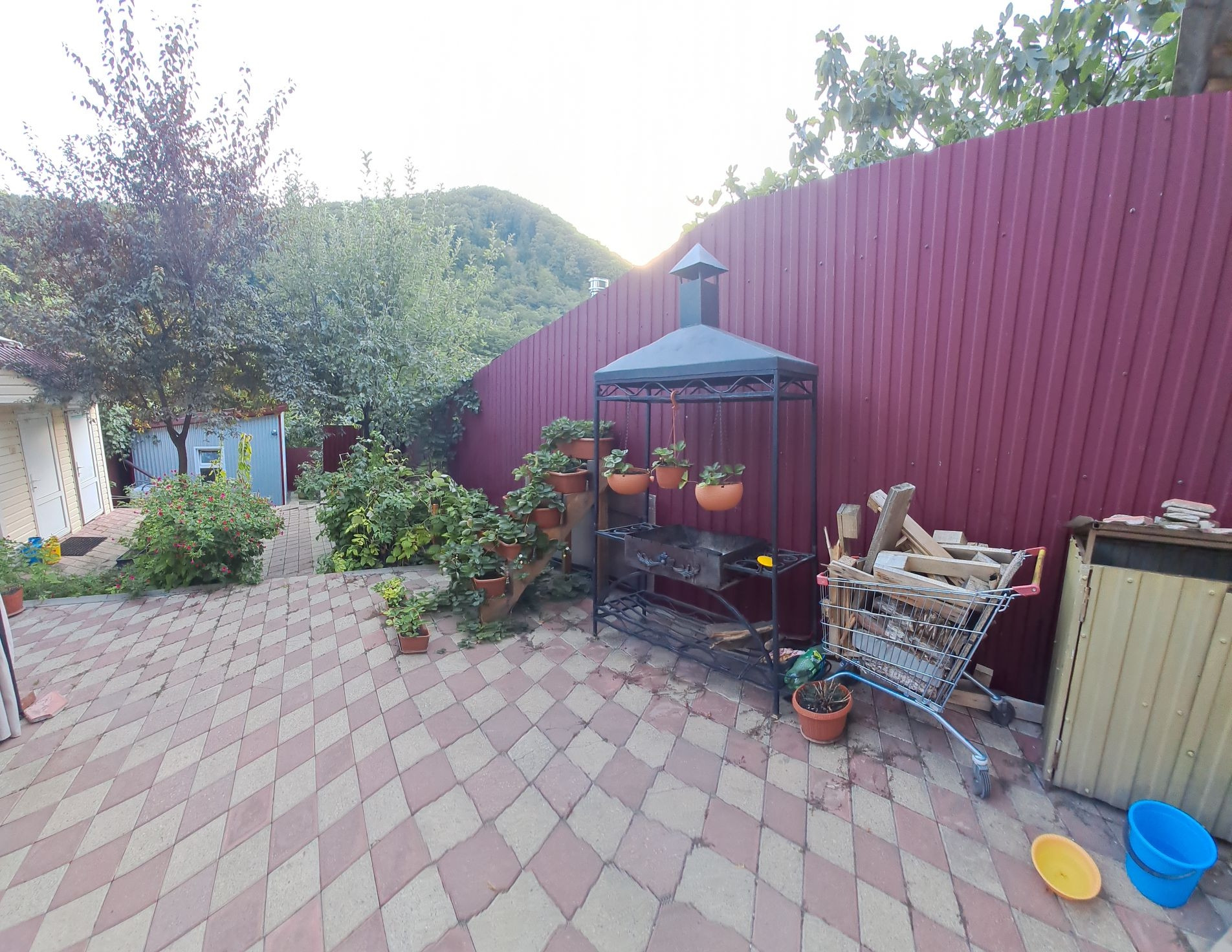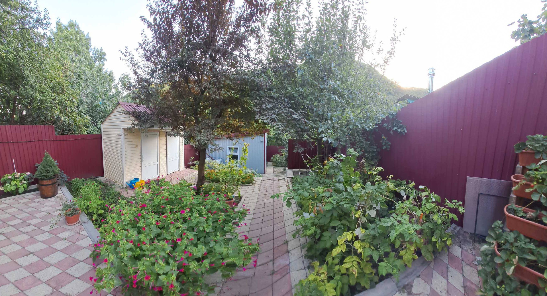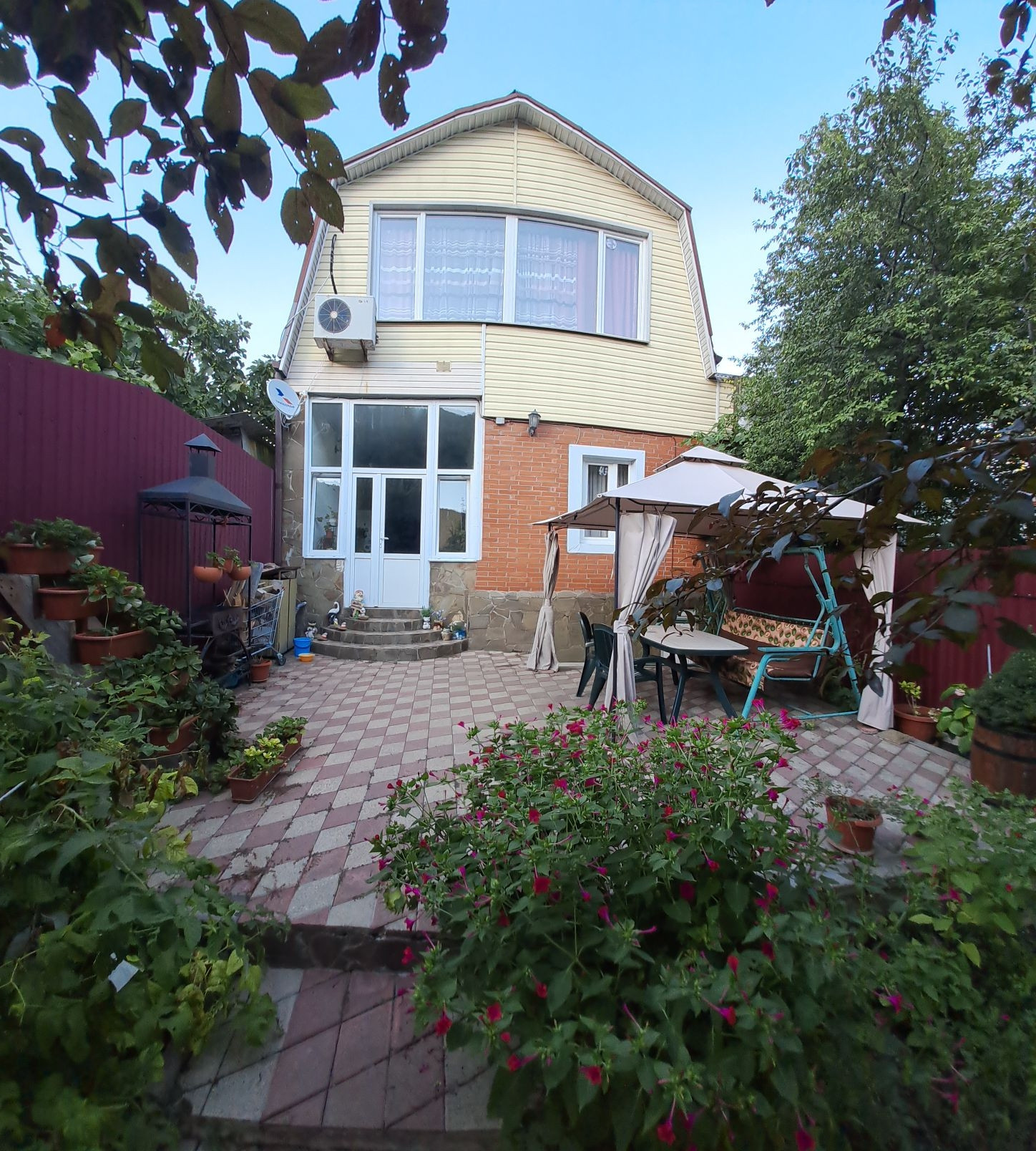 Продаётся двухэтажный жилой дом площадью 189.2 квадратных метров. В доме три спальни, два санузла, кухня, гостиная с камином, подвал. Дом построен из газобетона, снаружи обложен кирпичом и обшит сайдингом. Крыша покрыта металлочерепицей. Коммуникации: электричество, вода — центральная канализация, газовая труба проходит на границе с участком. На участке 2.8 соток расположен гараж на один автомобиль, зона барбекю, сарай, летний душ, туалет, шатер, фруктовые деревья, малина. Участок огорожен забором из профлиста. Дом находится в черте города, рядом остановка общественного транспорта, магазины, школа, детский сад.