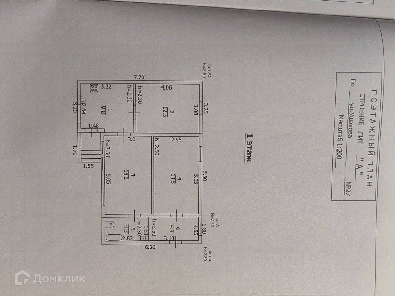 1-этажный дом, 52 м2, на продажу в Туапсе, улица Ушакова, 27
