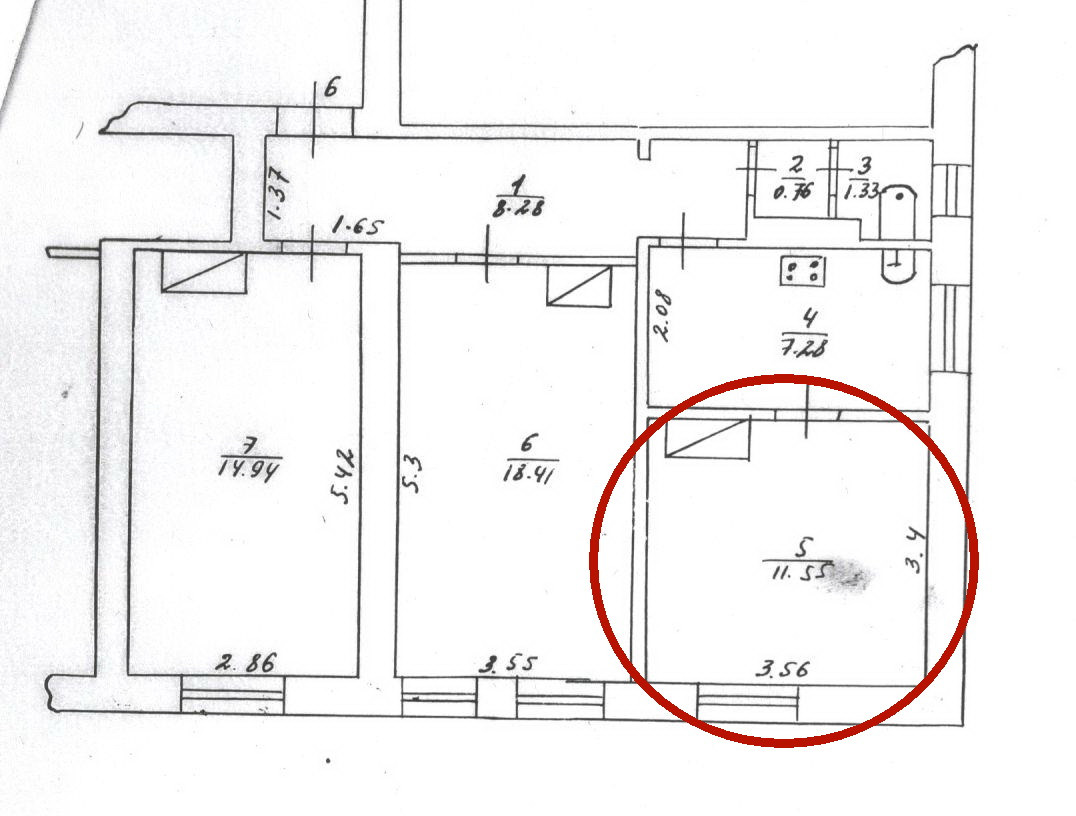 Продается комната в коммунальной трехкомнатной квартире.