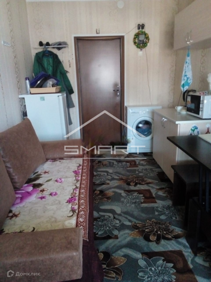 На этаже проживает 8 человек. Соседи тихие, приветливые. Душ, туалет, кухня - общие. Фактически общая площадь 15м2. Новое пластиковое окно. (Март 2022, гарантия 5 лет). Проведён интернет. Имеется: холодильник amp;quot;Саратовamp;quot; 1,4м высота; стиральная машина-автомат; стол кухонный и шкаф навесной - ширина 1м; пуф с коробом; стол-трансформер; табурет; шкаф с зеркалом 1,5х2,2х0,6; журнальный прикроватный столик; сушилка для белья; диван-кровать 1,4х2,0; пылесос; микроволновка, духовой шкаф с 2-мя комфорками; палас, телевизор 37 по диагонали. Всё было приобретено в 2016 году. Диван-кровать, микроволновка и стиральная машина - в 2018 г. Год в квартире никто не проживал.