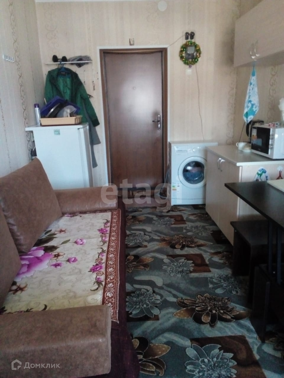 На этаже проживает 8 человек. Соседи тихие, приветливые. Душ, туалет, кухня - общие. Фактически общая площадь 15м2. Новое пластиковое окно. (Март 2022, гарантия 5 лет). Проведён интернет. Имеется: холодильник Саратов 1,4м высота; стиральная машина-автомат; стол кухонный и шкаф навесной - ширина 1м; пуф с коробом; стол-трансформер; табурет; шкаф с зеркалом 1,5х2,2х0,6; журнальный прикроватный столик; сушилка для белья; диван-кровать 1,4х2,0; пылесос; микроволновка, духовой шкаф с 2-мя комфорками; палас, телевизор 37 по диагонали. Всё было приобретено в 2016 году. Диван-кровать, микроволновка и стиральная машина - в 2018 г. Год в квартире никто не проживал.