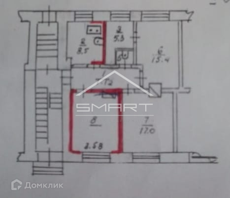 Жилая площадь 15.3 м2