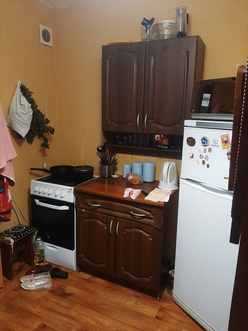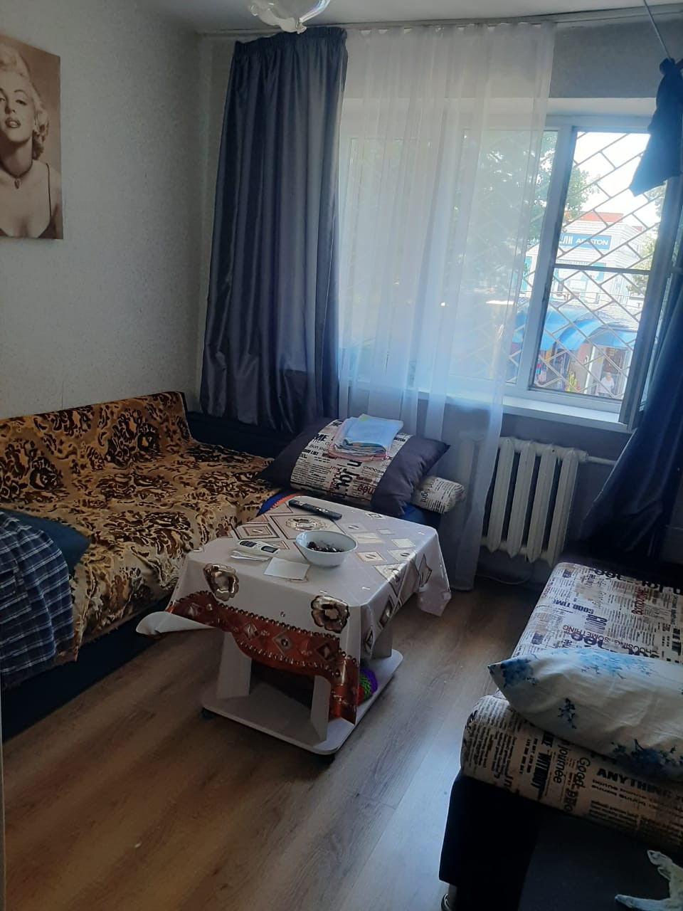 Комната в хорошем состоянии, в комнате находятся: душкабина, кухонная зона с мойкой, стеклопакет, частично остаются в комнате: мебель, бытовая техника и оборудование, не большие коммунальные платежи.