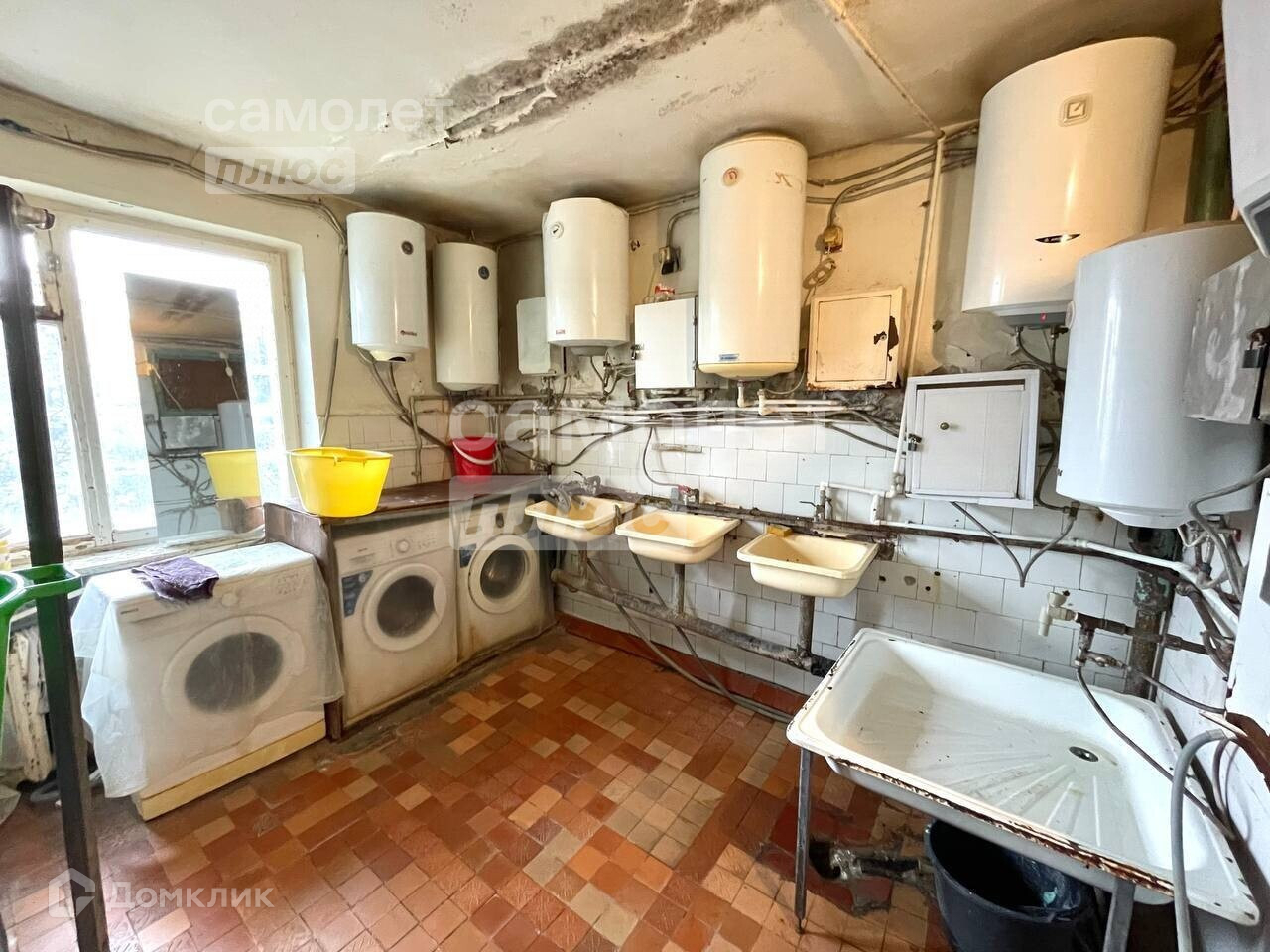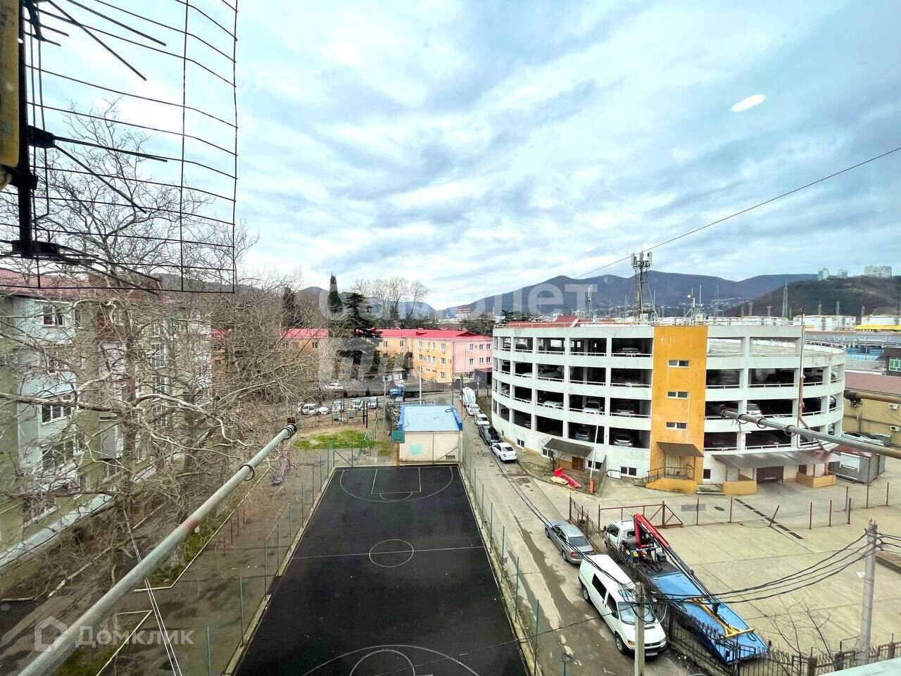 За окном есть бельевые верёвки, для сушки белья.