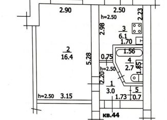 Общая площадь: 43.6 м2