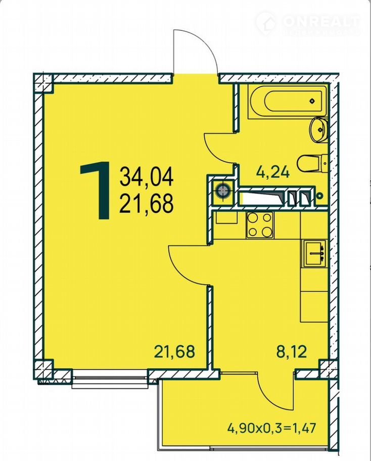 Общая площадь 34 м2