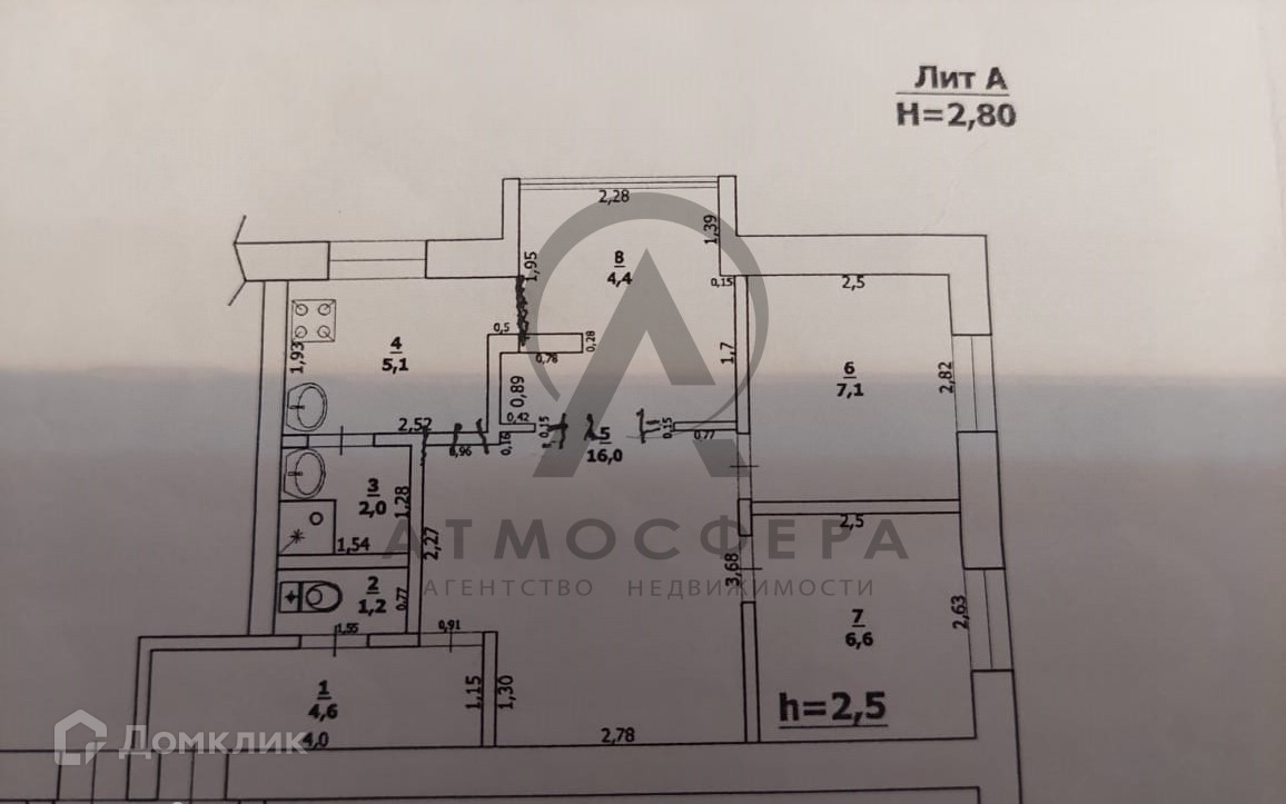 Высота потолков 2.5 м