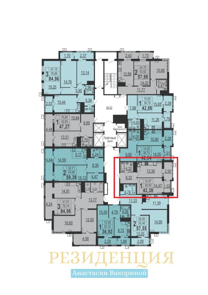Общая площадь 46.2 м2