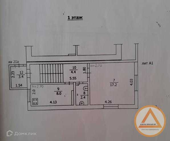 На 1 этаже: жилая комната 17.2 м.кв.,сан.узел, кухня 8 м.кв..
