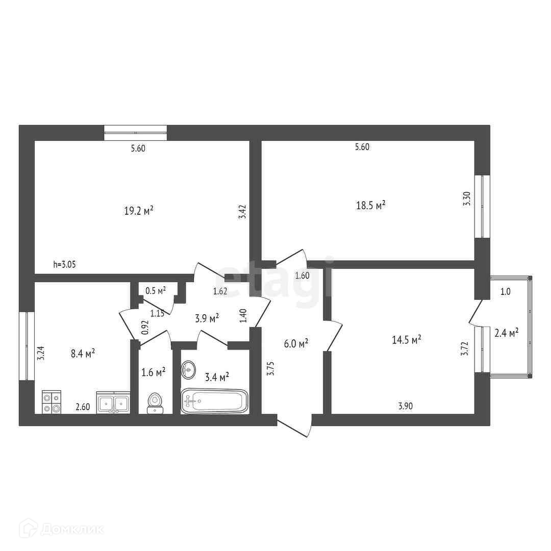 Эта уютная квартира общей площадью 55 кв.м расположена на третьем этаже четырёхэтажного блочного дома и станет идеальным вариантом как для комфортной жизни, так и для выгодного вложения.