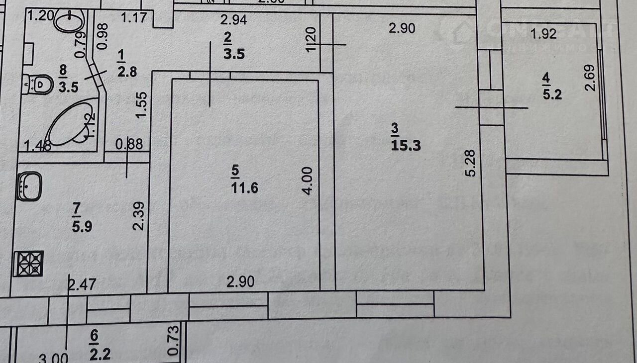 Жилая площадь 26.9 м2