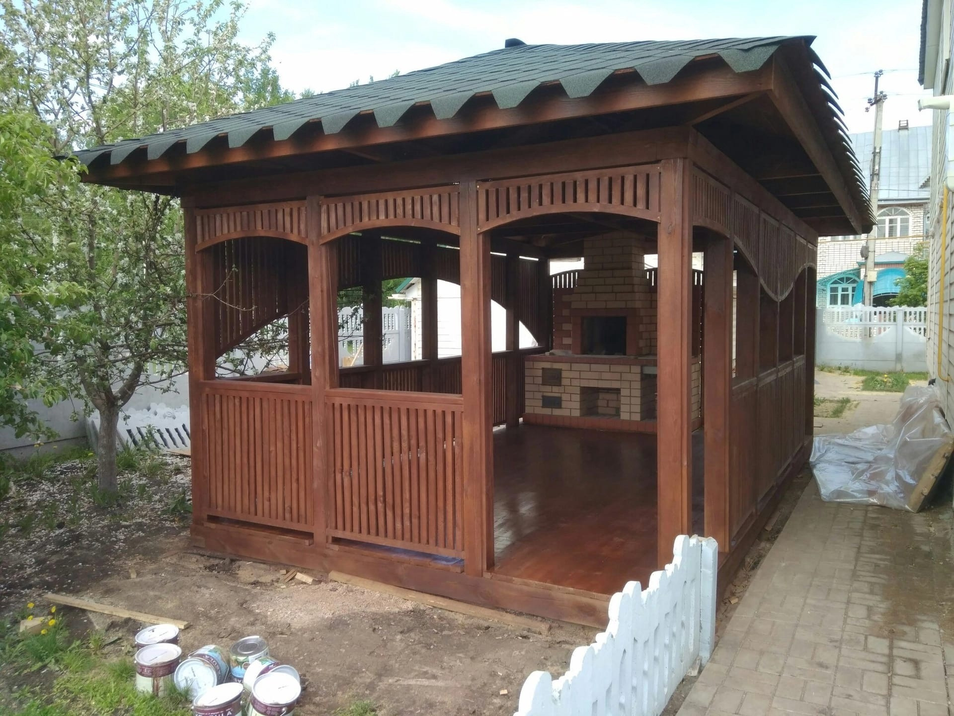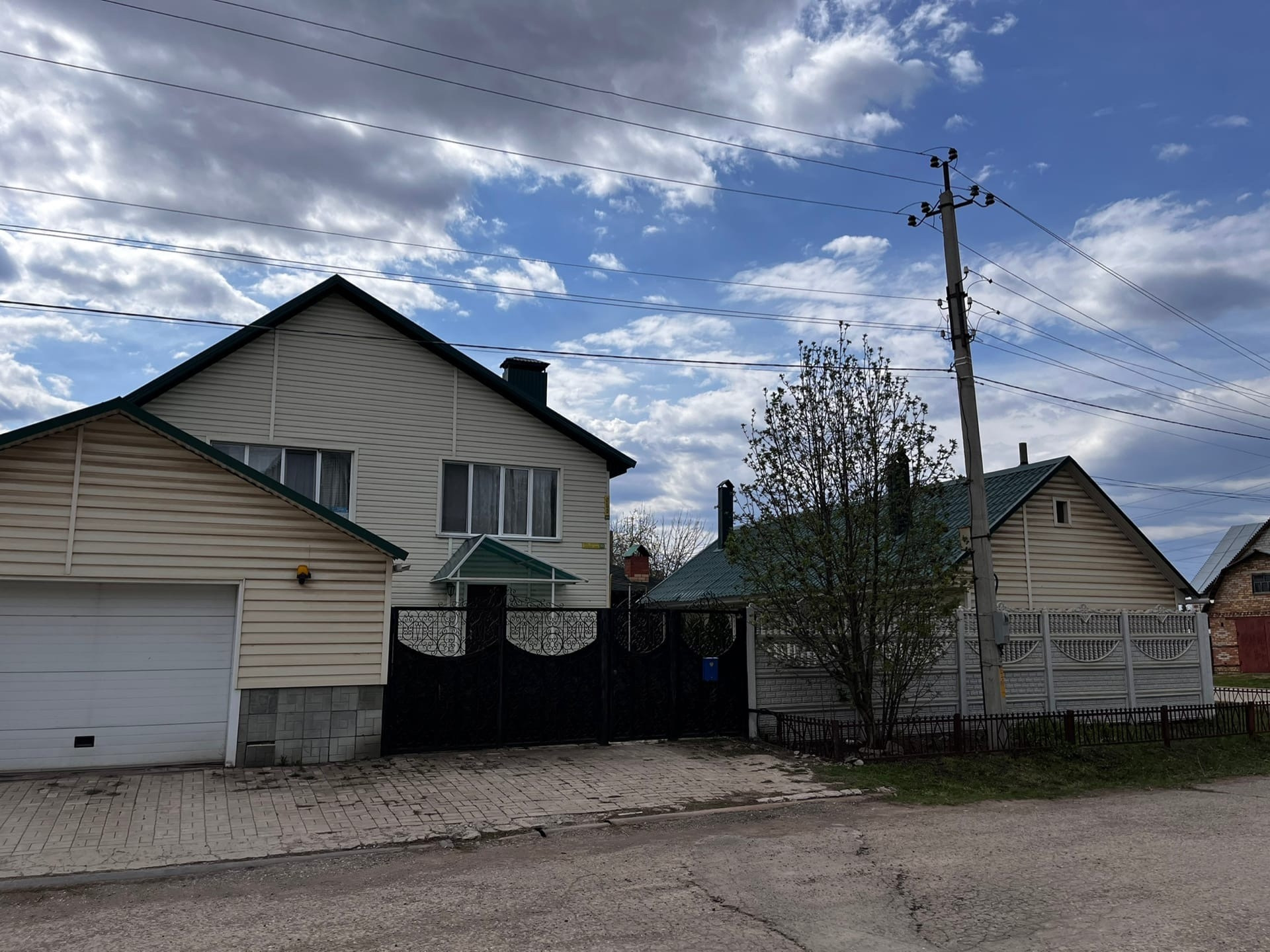 Во дворе имеется  хозяйственный блок для хранения инструментов, беседка 3.5 Х 6 м. с горячей водой. Большой гараж автоматическими воротами и входом в дом.
