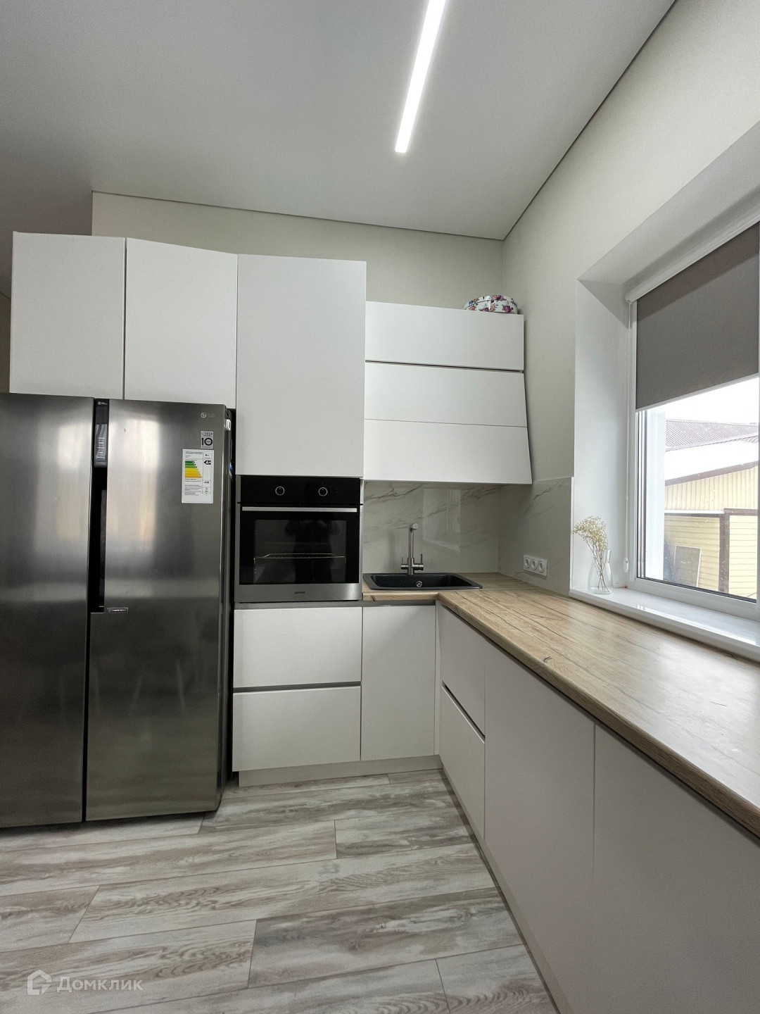 В подарок будущим владельцам остается новый кухонный гарнитур, встроенная техника и частично мебель.