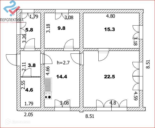 Высота потолков 2.7 м