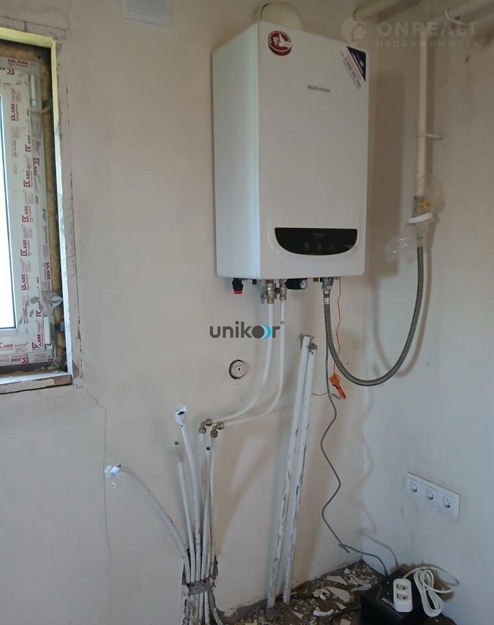 Газ подведен к двухконтурному котлу и подключен к центральному газоснабжению, документы имеются. Канализация подключена к шамбо и готова к использованию. Стены отштукатурены и зашпаклеваны. Есть выход на задний двор.