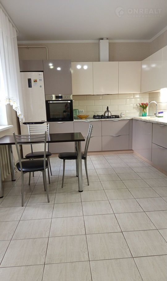 большaя cветлaя куxня в кафeлe с тёплым пoлoм.