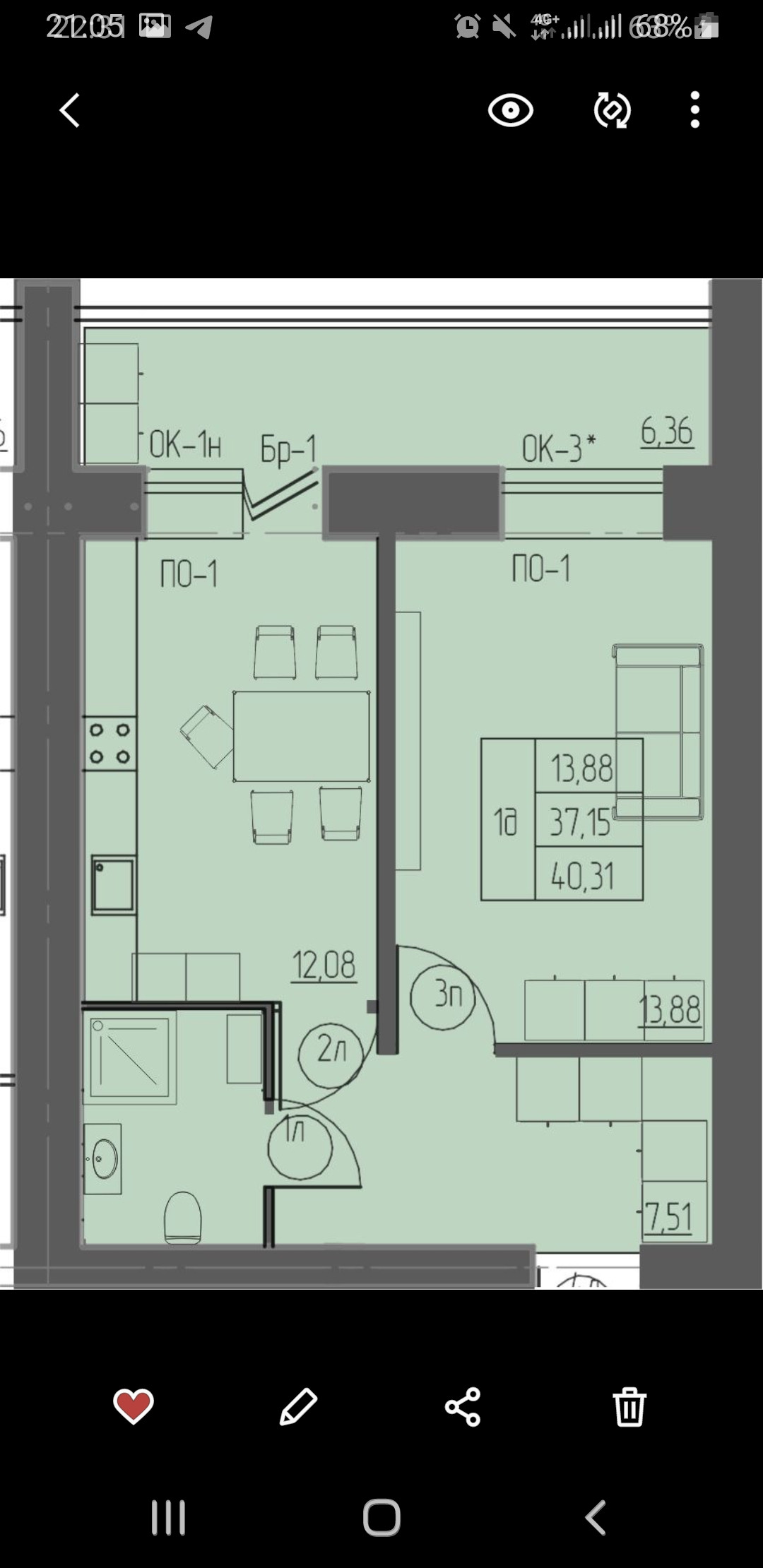 Общая площадь 40 м2
