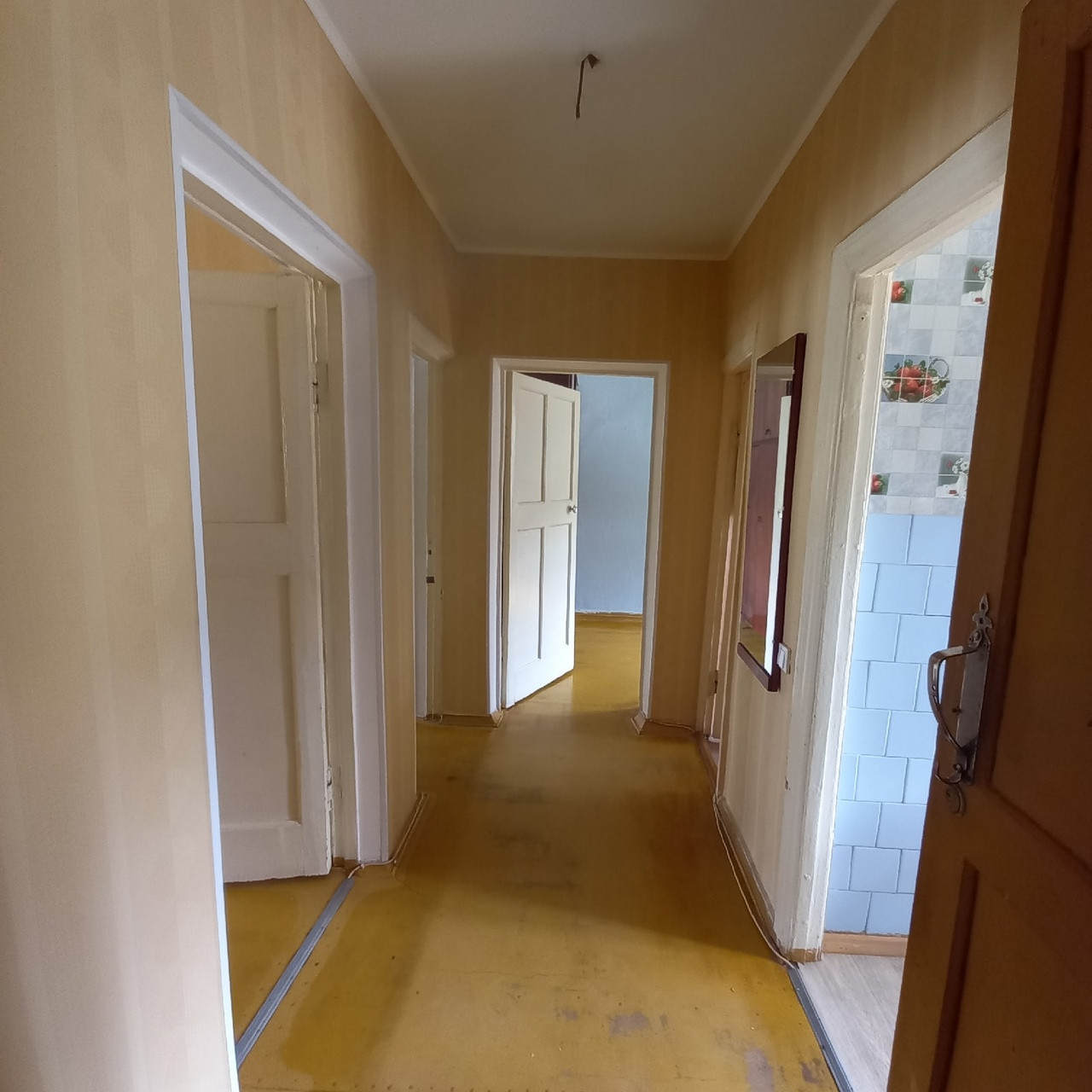 Просторный зал 17 кв. м.,изолированные комнаты.Балкон застеклен.В квартиры выровнены стены, установлены натяжные потолки.