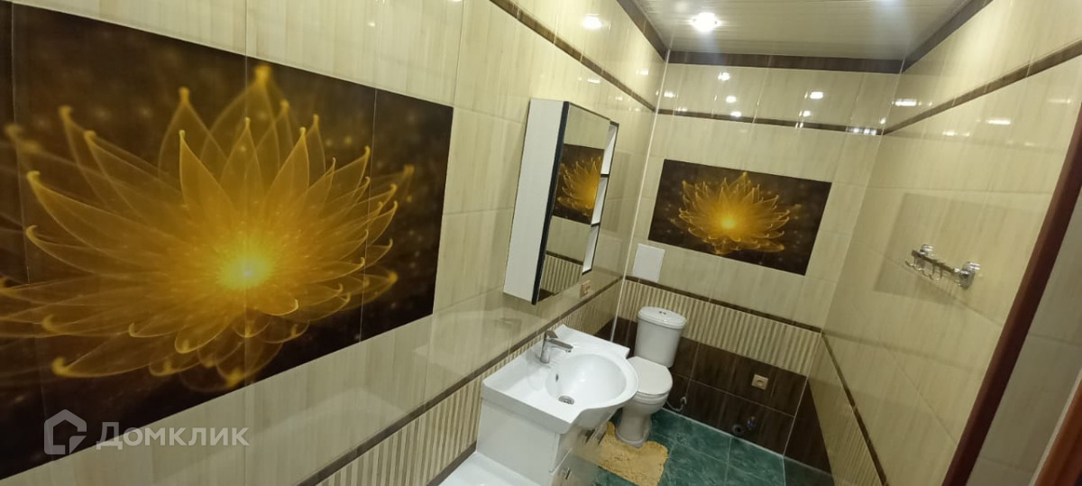 Ванная комната отделана кафелем, установлена хорошая сантехника .