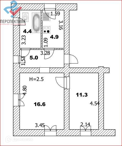 Высота потолков 2.5 м