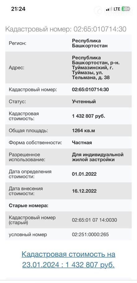 Участок под ИЖС, 6.3 сот. на продажу в Туймазах, улица Тельмана, 38