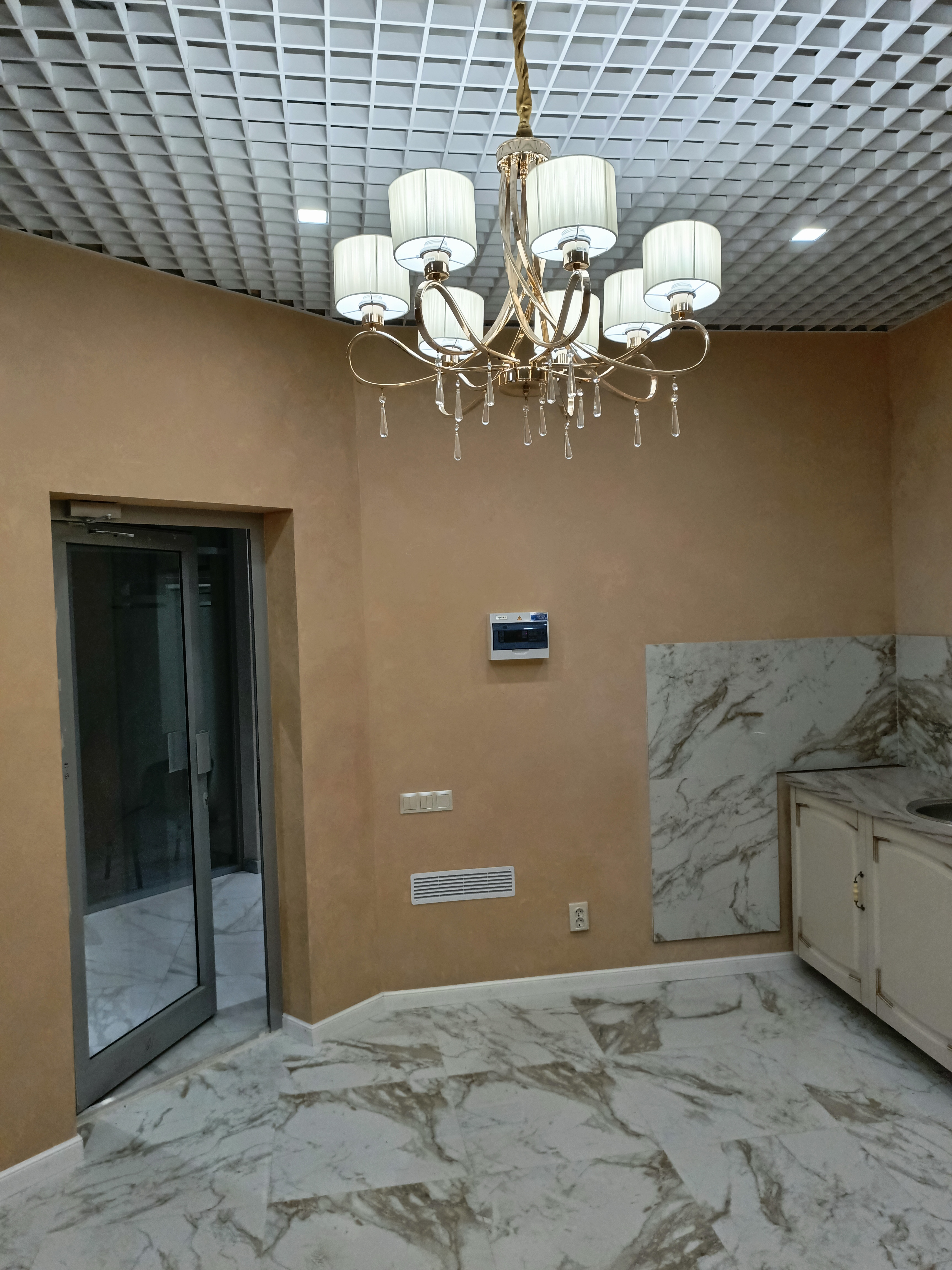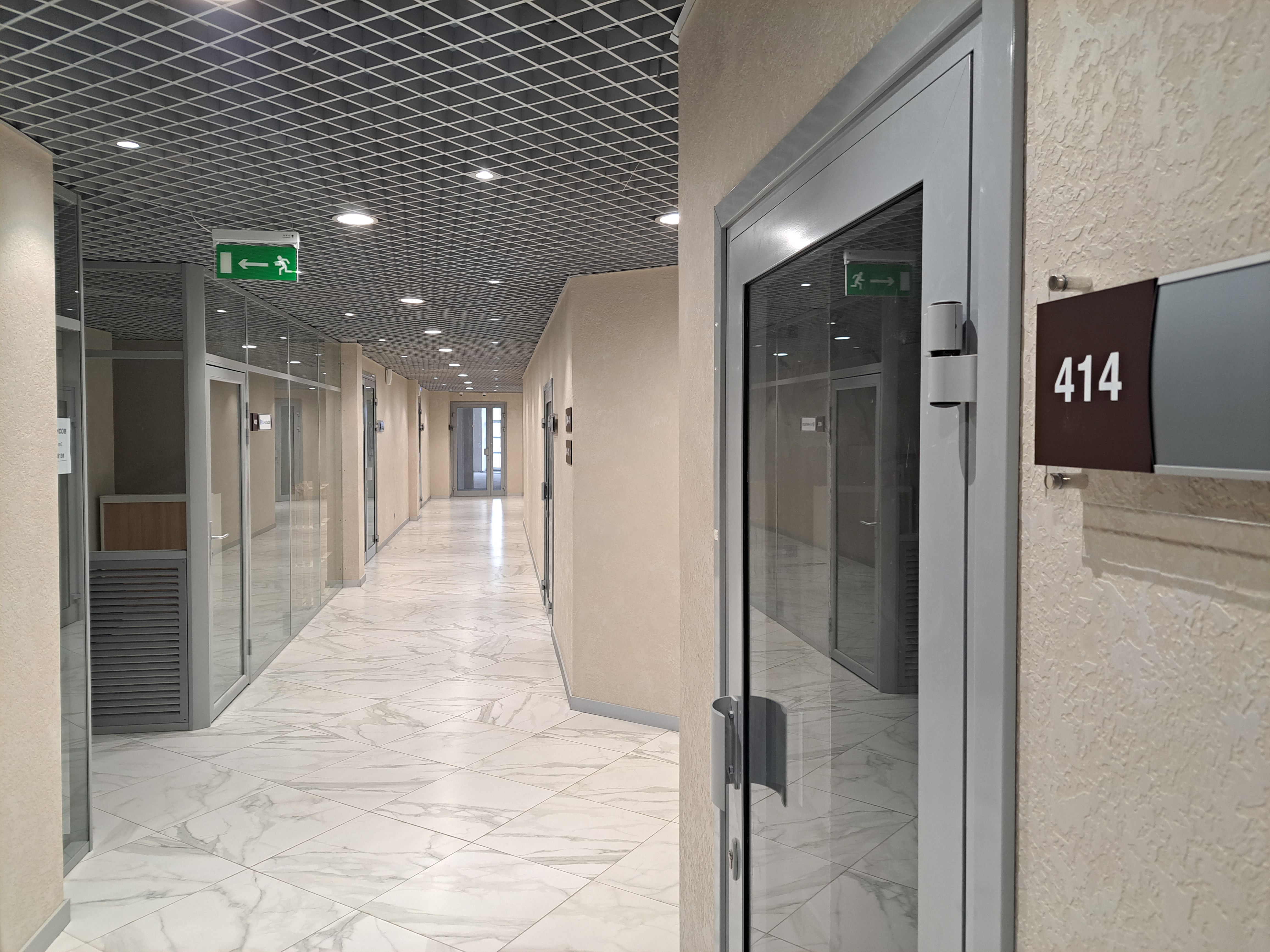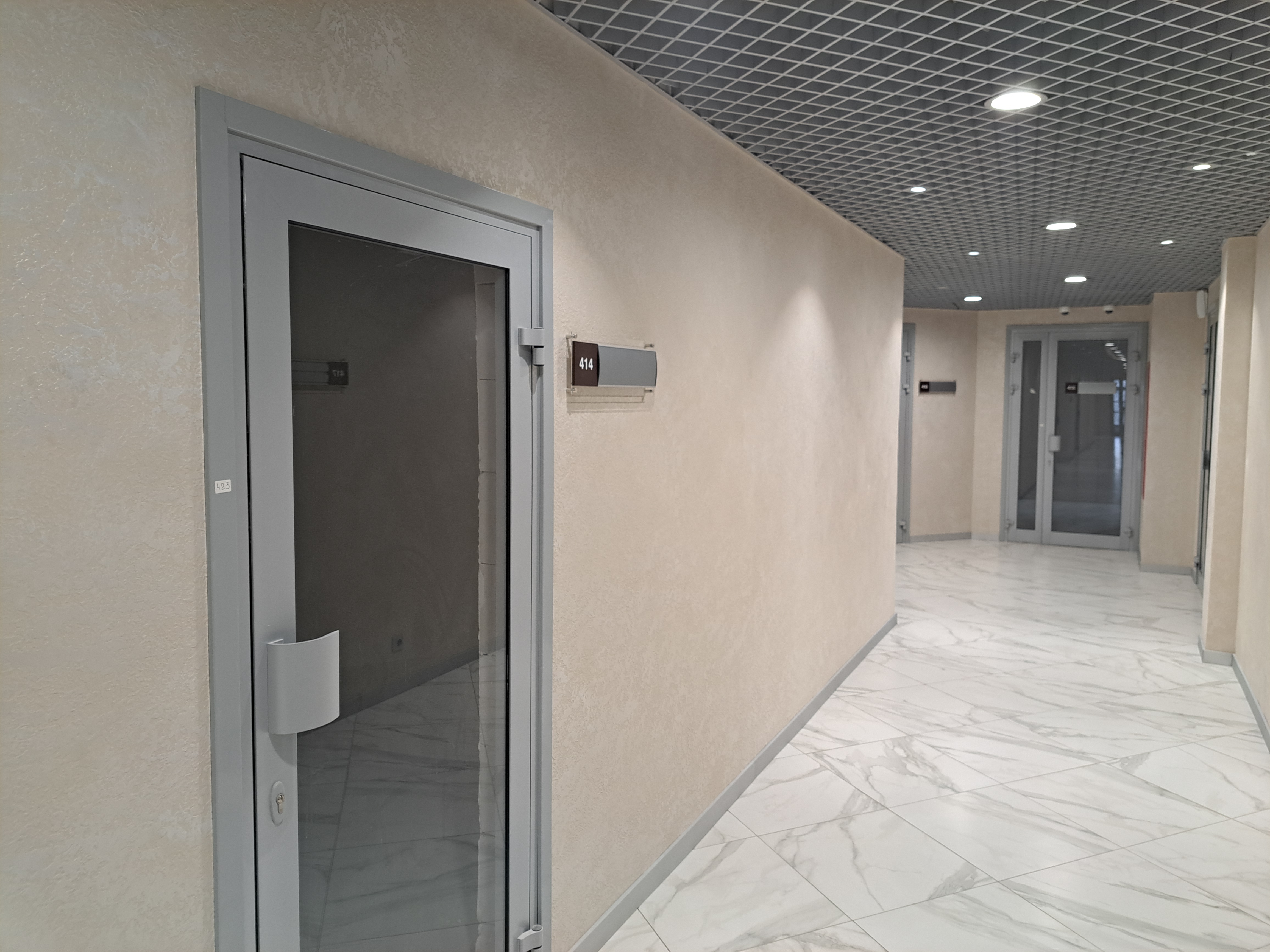 ►Помещение 19 м2 расположено у входа на 4й этаж из лифтовой зоны и лестниц, в центре здания. Потолки 3,5 метра. Окон нет, световая стеклянная непрозрачная дверь (дверь уже матирована, на фото еще прозрачное стекло).