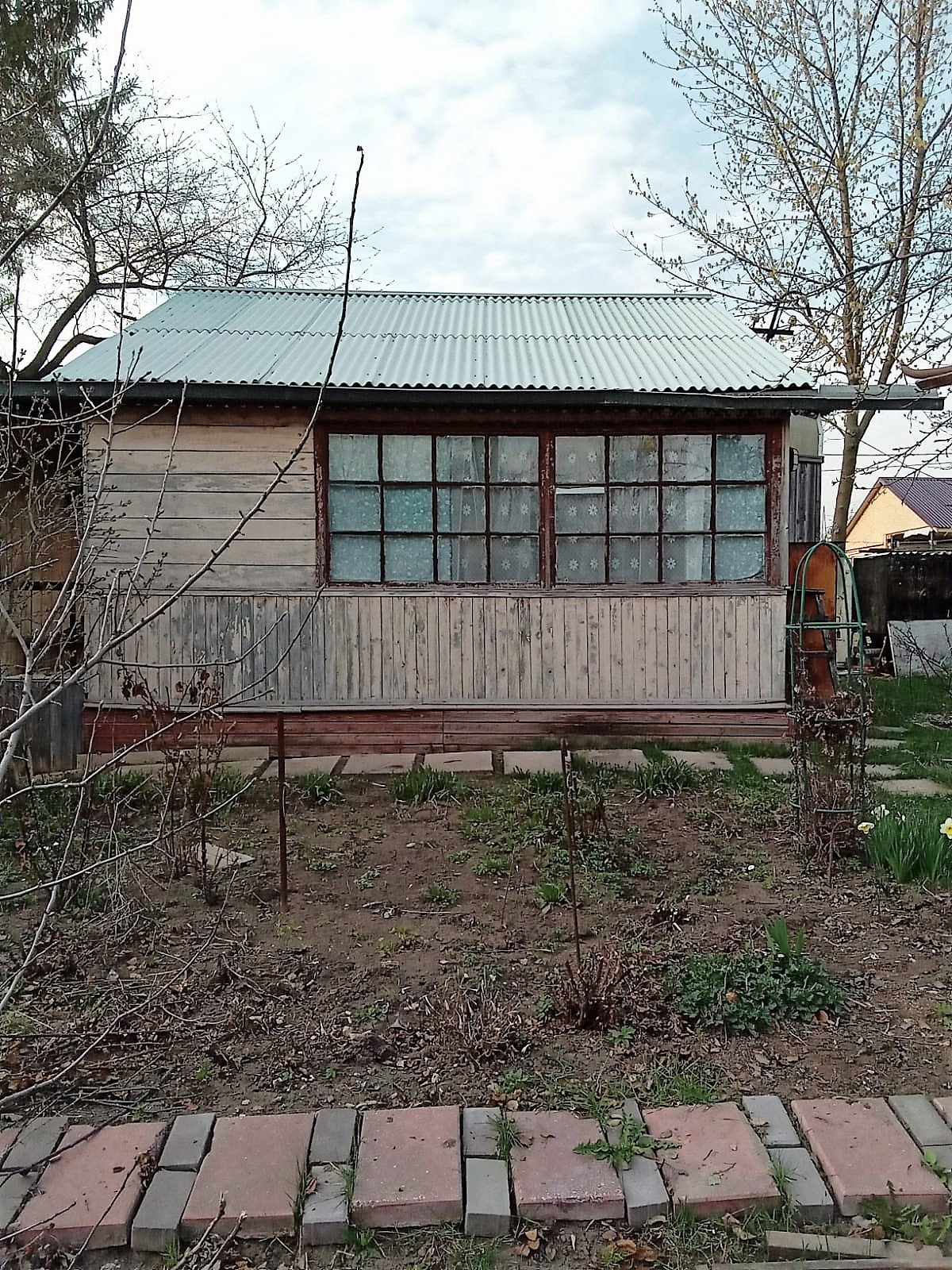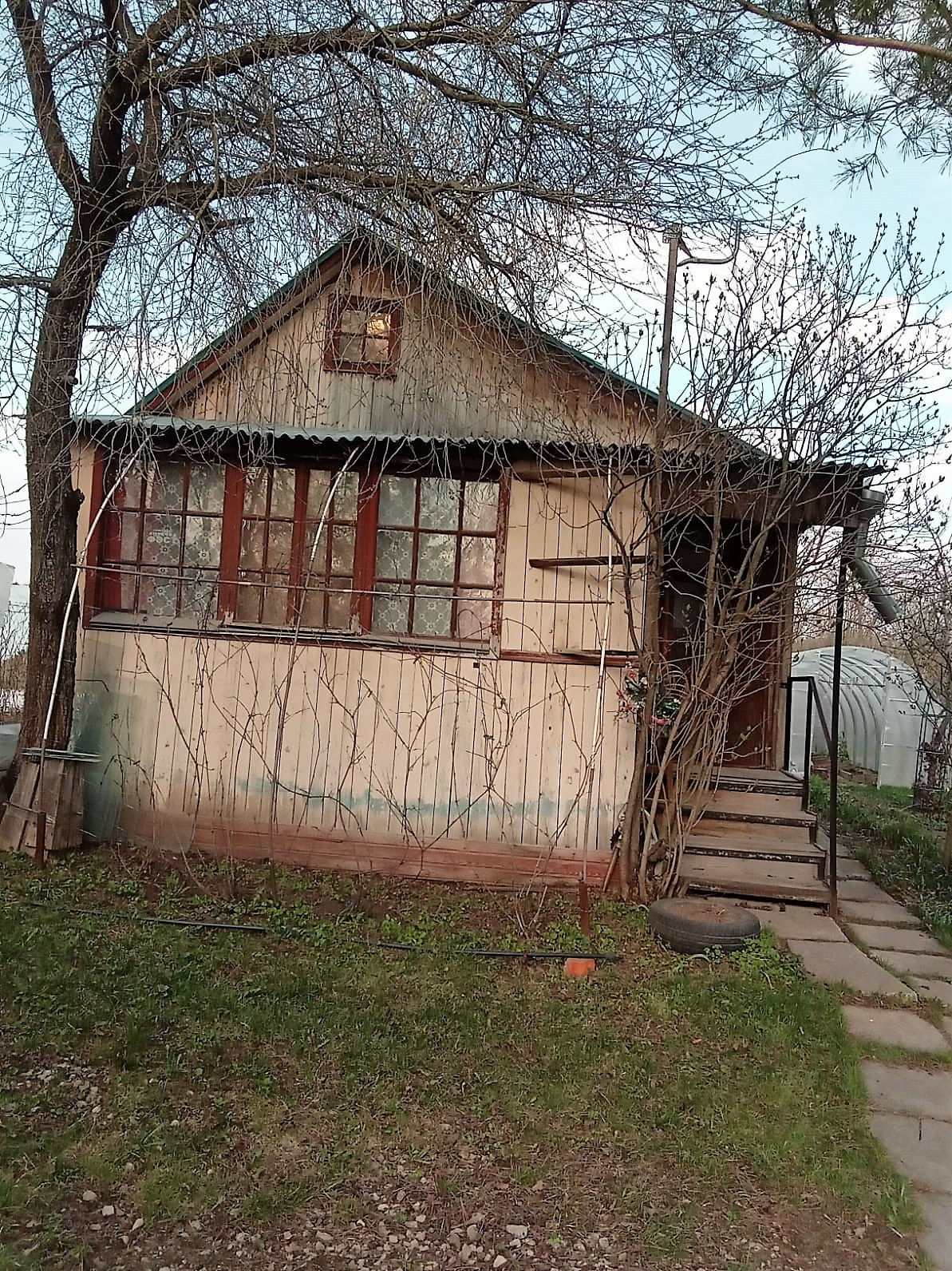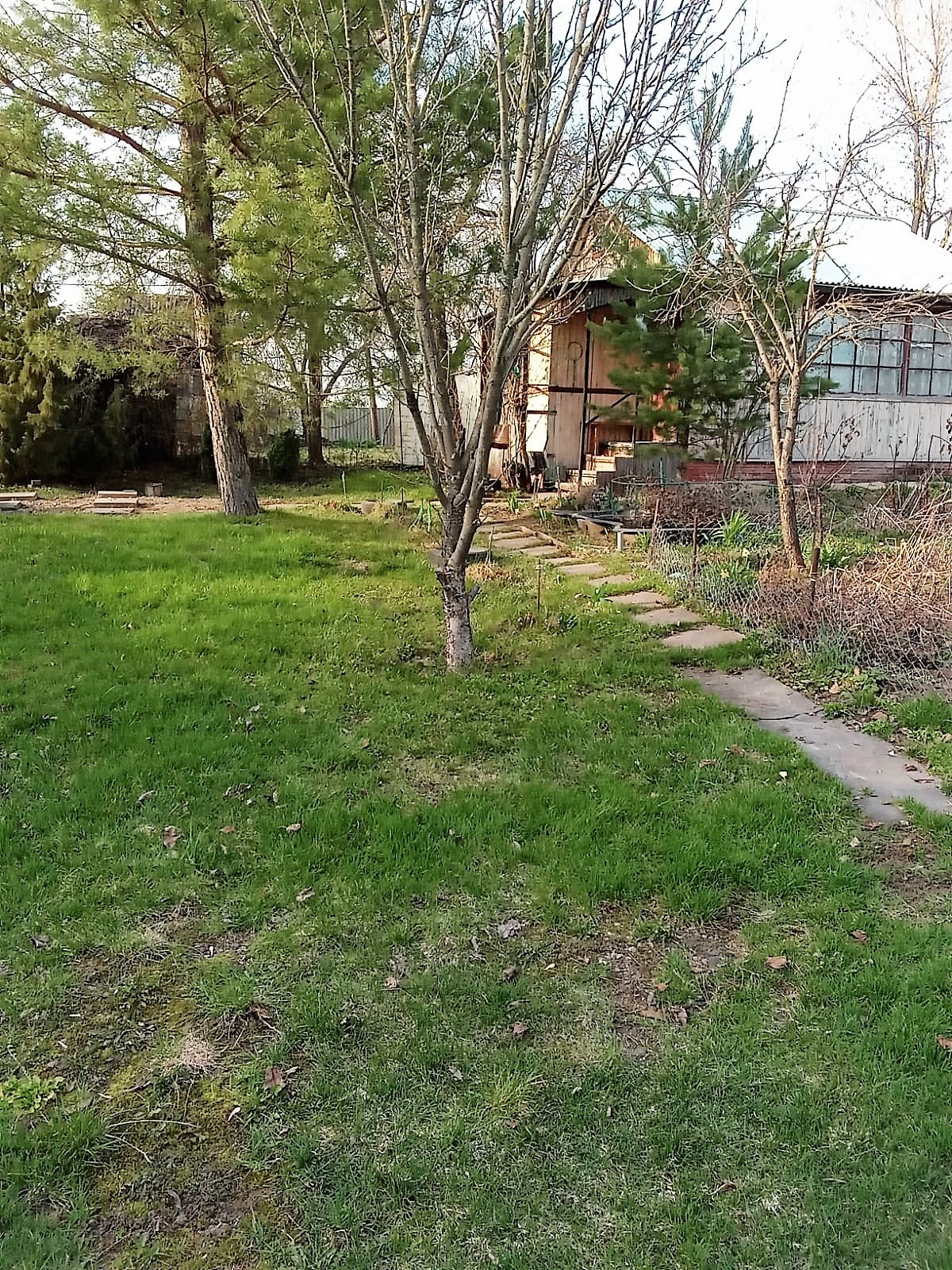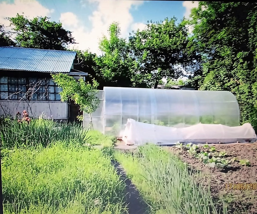 Участок 5 соток. На участке есть плодовые деревья и кусты, теплица.