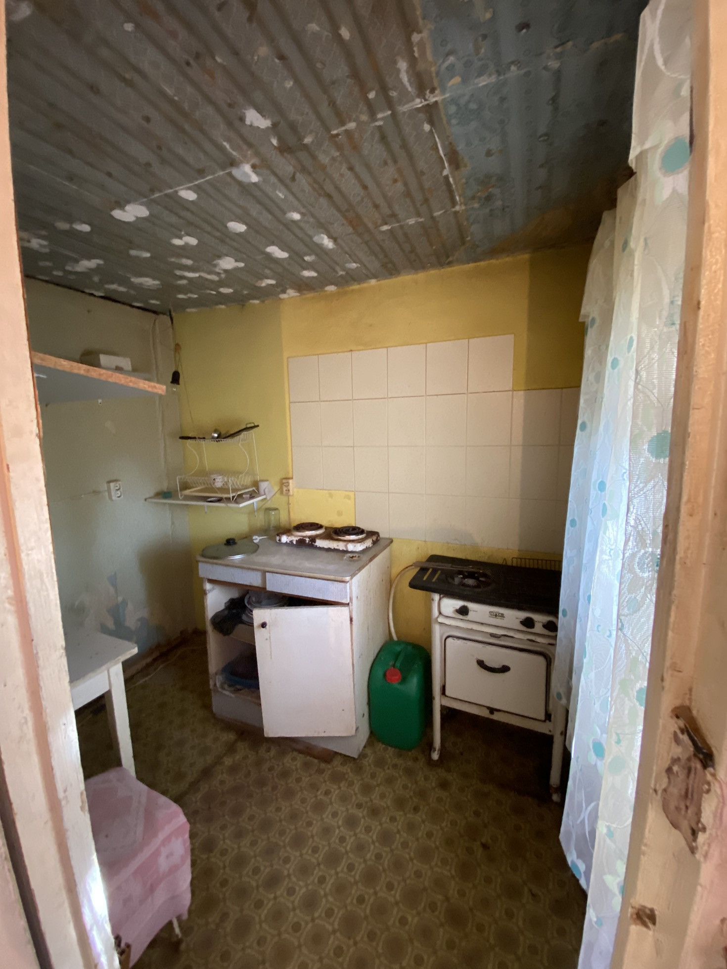 На первом этаже две комнаты: спальня и кухня.