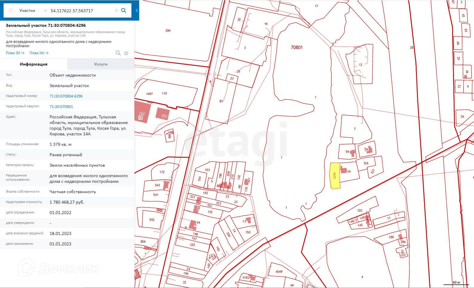 Номер в базе: 10686727. Район: Косая Гора п.