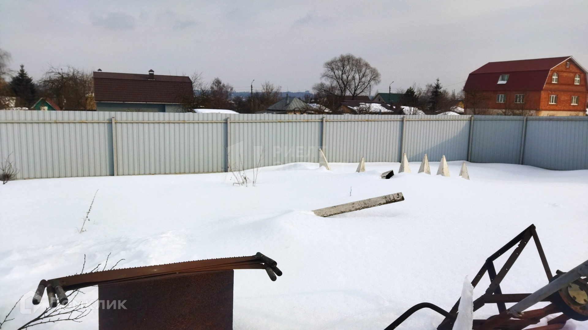 Участок ровный, квадратной формы. Заезд для машины возможен с двух сторон дома.