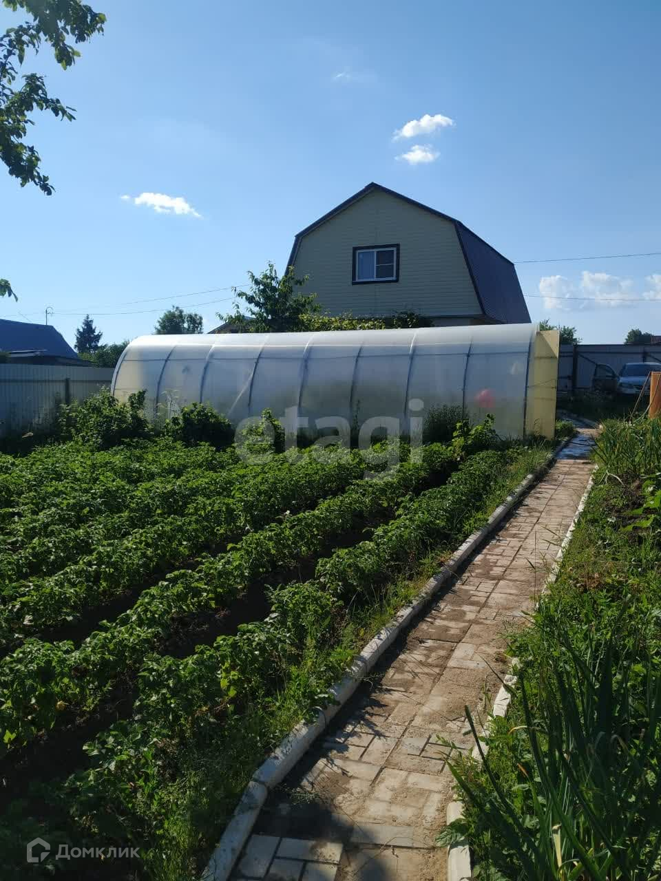 Ухоженный участок, плодовые деревья (яблони, сливы, терн, вишни, черешня) и кустарники (черная и красная смородина, крыжовник, виноград, ежевика).