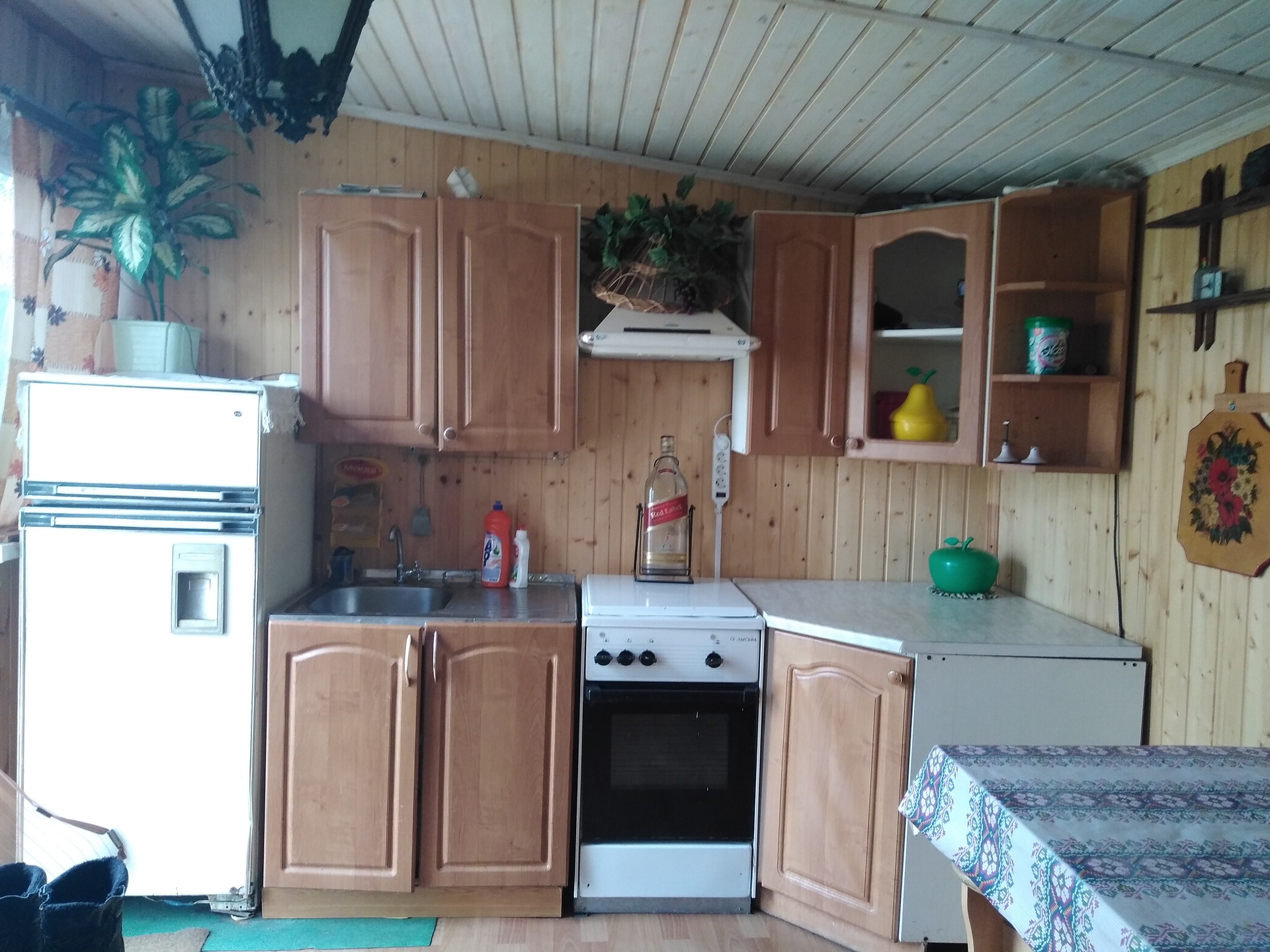 В доме есть разводка воды на кухне и в санузле. (Санузел:душ с водонагревателем, туалет ,стиральная машина. )Имеется новая летняя кухня 3х4 с водой и мебелью ( внутри обшита вагонкой ,сверху сайдингом.Крыша- металлопрофиль.)В настоящее время достраивается балкончик к летней кухне. Также есть металлический гараж и сарай.