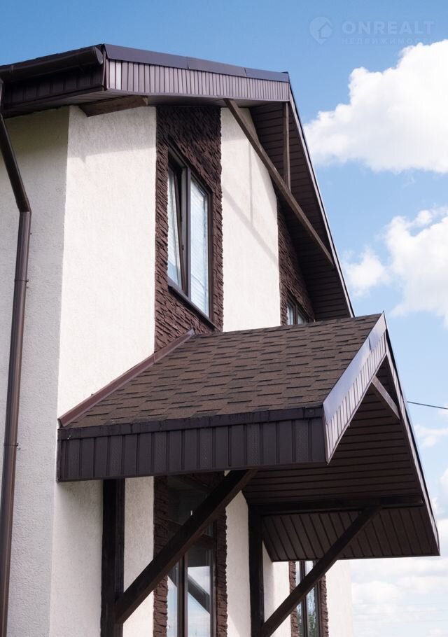 Отделка фасада дома штукатуркой или кирпичом, цвет на ваш выбор.